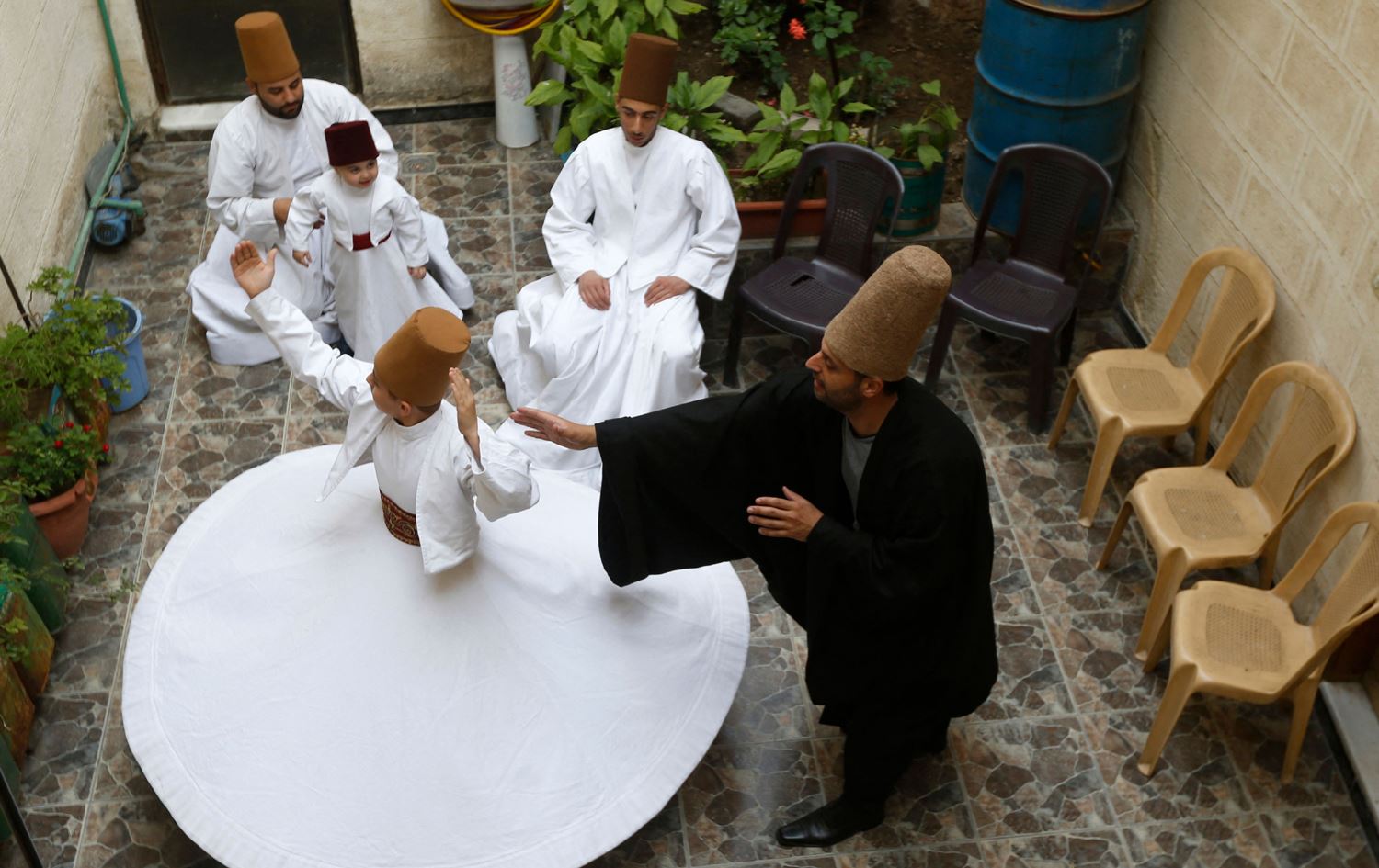 داخل أحد مطاعم دمشق القديمة، يُبهر أنس، ذو السنوات الثلاث وأصغر دراويش سوريا، الحاضرين وهو يدور بسرعة حول نفسه محافظاً على توازنه، فيخطف الأنظار من بقية أفراد عائلته التي توارثت رقص المولوية الصوفية منذ قرن.