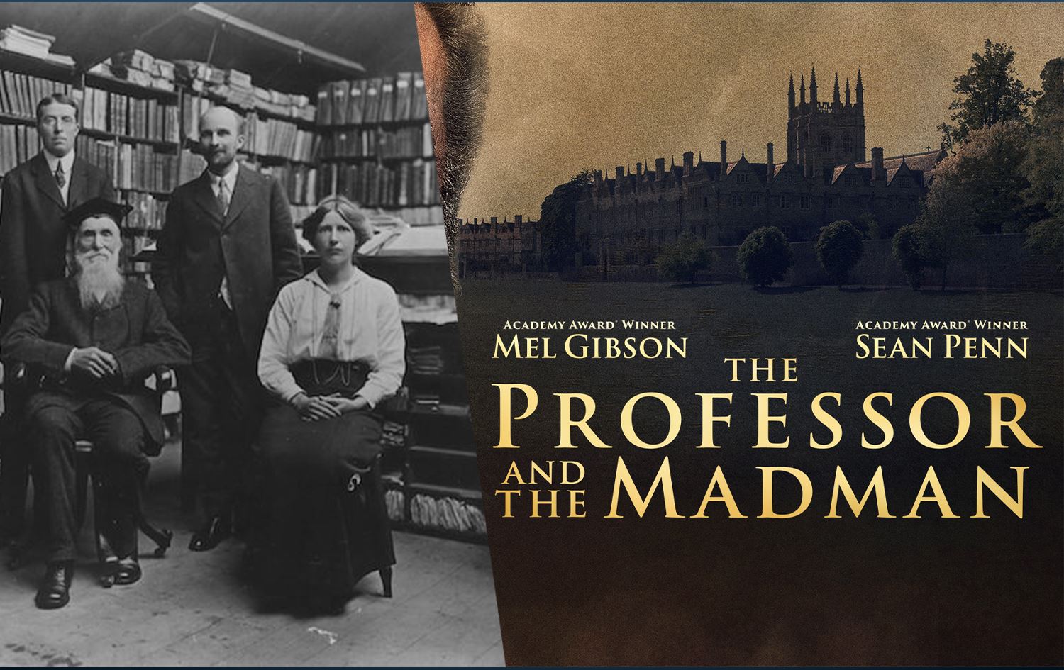 "The Professor and The madman" الذي يعرض حاليا على منصة نيتفليكس Nitflix وهو قصة واقعية، انتاج 2019، من إخراج الايراني فرهاد صافينيا، تحت الاسم المستعار (بي بي شيمران) P. B. Shemran، وهوالمولود في طهران عام 1975، ودرس الفنون فى (ذا نيو سكول) كلية الملك في كيمبرج و مدرسة تيش للفنون في انجلترا، وشارك ايضا بكتابة السيناريو الى جانب تود كومارنيسكي، اعتمادا على قصة حقيقية كتبها سيمون وينشستر بعنوان (جراح كروثورن) The Surgeon of Crowthorne ، صدرت عام 1998. ومن بطولة ميل غيبسون، وشون بن، وناتالي دورمر، وادي مارسان، وجنيفر أهل، وجيريمي إيرفين، وديفيد أوهارا، وإيوان جروفود، وستيفن ديلان، وستيف كوغان. ، ومدة العرض 124 دقيقة.