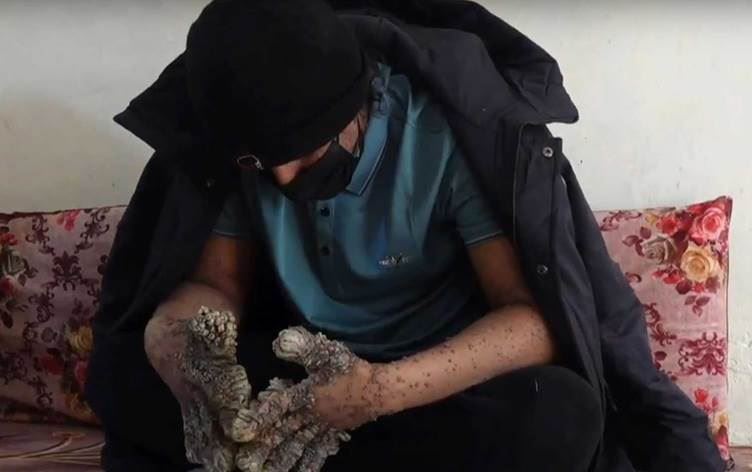 اسم المرض هو "الرجل الشجرة"، حيث تنمو ثآليل (زوائد جلدية) على اليدين وأحياناً القدمين، وبعد أن تنمو بالكامل، تصبح مثل أغصان وقشور الأشجار.