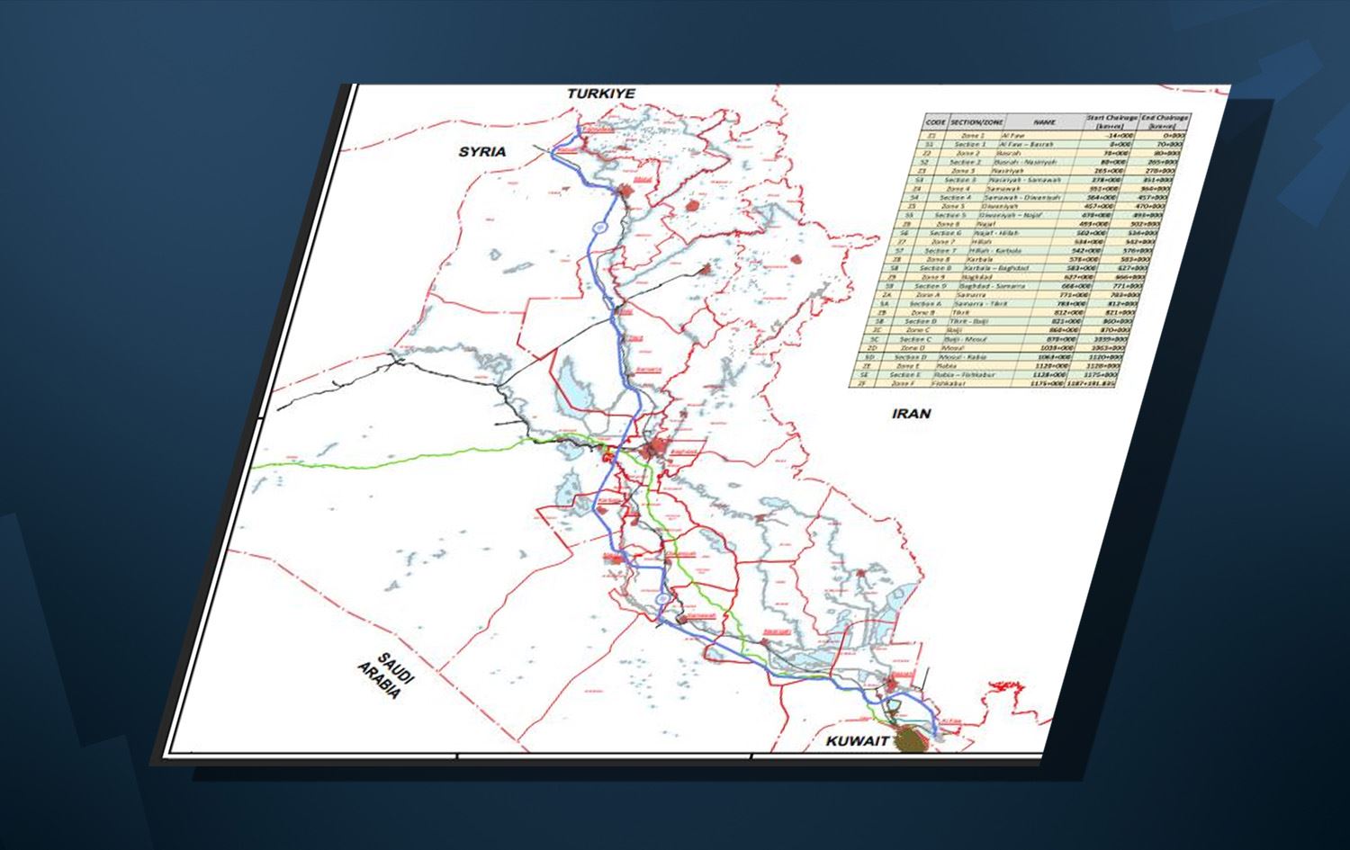 ووفقاً للمعلومات، فإن لإقليم كوردستان ملاحظات على هذا المسار والمسافة وموقع مروره عبر إقليم كوردستان.