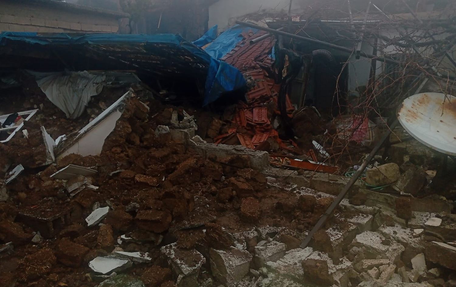 4- رائد الدرعوزي وزوجته عوفه إبراهيم وأولاده محمود خلاص ومحمد خلاص في انهيار بنايتهم بالقرب من شارع الفيلات في مدينة عفرين.