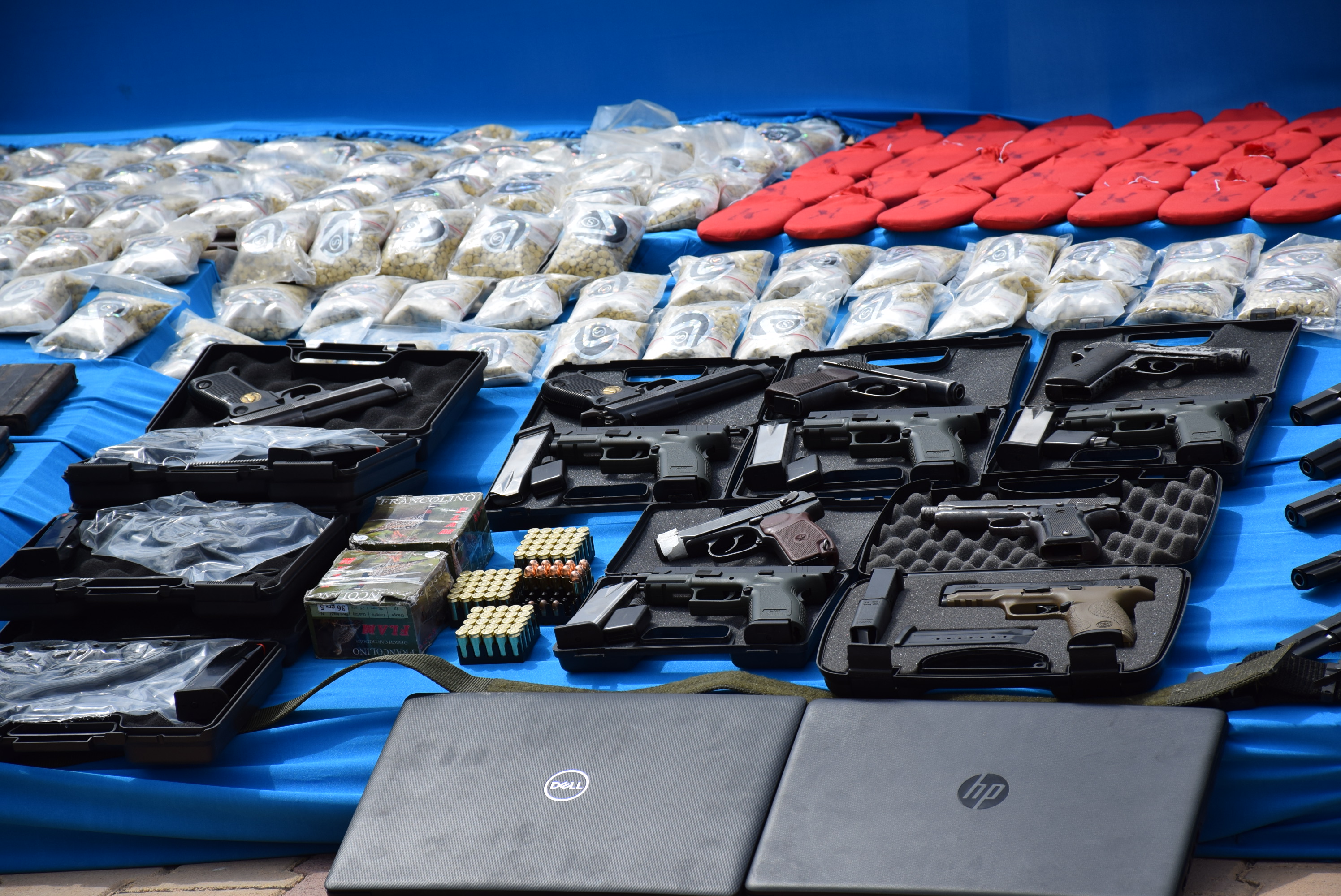 وعن كمية المواد التي تم ضبطها، إضافة لعدد من الأسلحة، فتابع البيان "تمكنت مكافحة الجريمة وبمساندة القوات الخاصة الـ( H.AT) من إفشال أكبر عملية تهريب للمواد المخدرة بتاريخ فجر يوم السبت التاسع من نيسان، لشبكة كبيرة من التجار خمسة منهم يعملون ضمن مناطقنا تم إلقاء القبض عليهم, و قد ضبط خلال العملية المواد التالية، 196ألف حبة مخدرة من نوع كبتيكول،474 كف حشيش بأنواع مختلفة، 11250 دولار أميركي مزور وأسلحة نارية كان منها: 26 مسدساً مع ذخائرها سلاحيّ قناص بندقيتي صيد مخازن درانكوف عدد 63، 3 مخازن مسدسات إضافة للعديد من الحواسيب والهواتف النقالة".