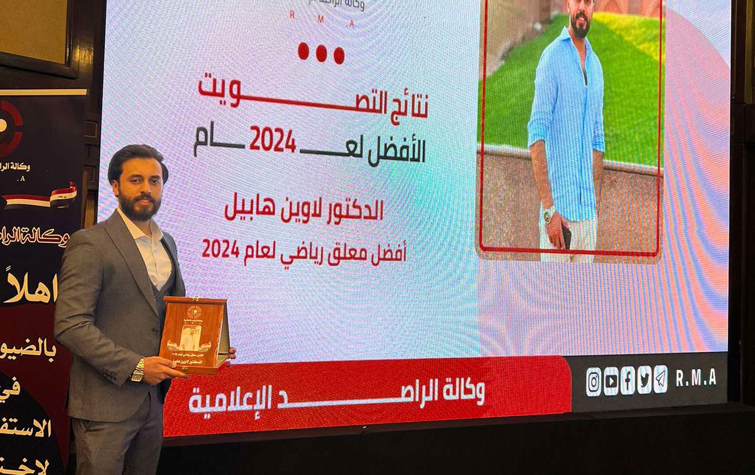 فاز المعلّق الرياضي في قناة رووداو، لاوين هابيل، بجائزة أفضل معلق رياضي في العراق للعام 2024، وفقاً للاستفتاء الجماهيري الذي أجرته وكالة الراصد الاعلامية.