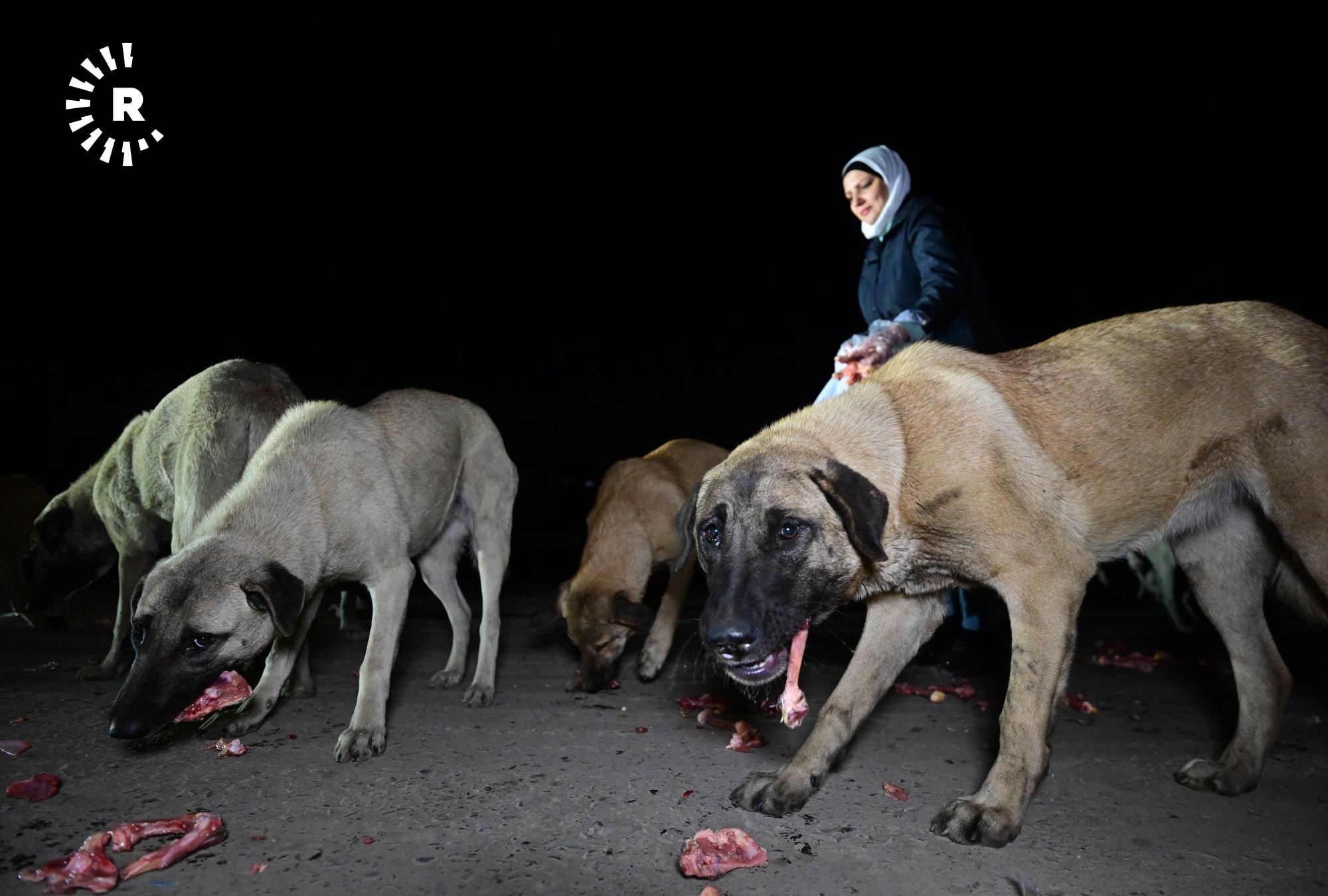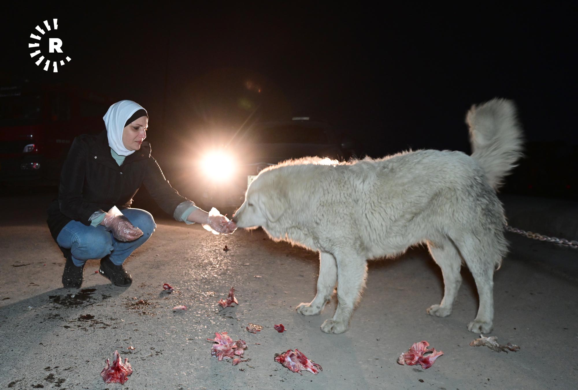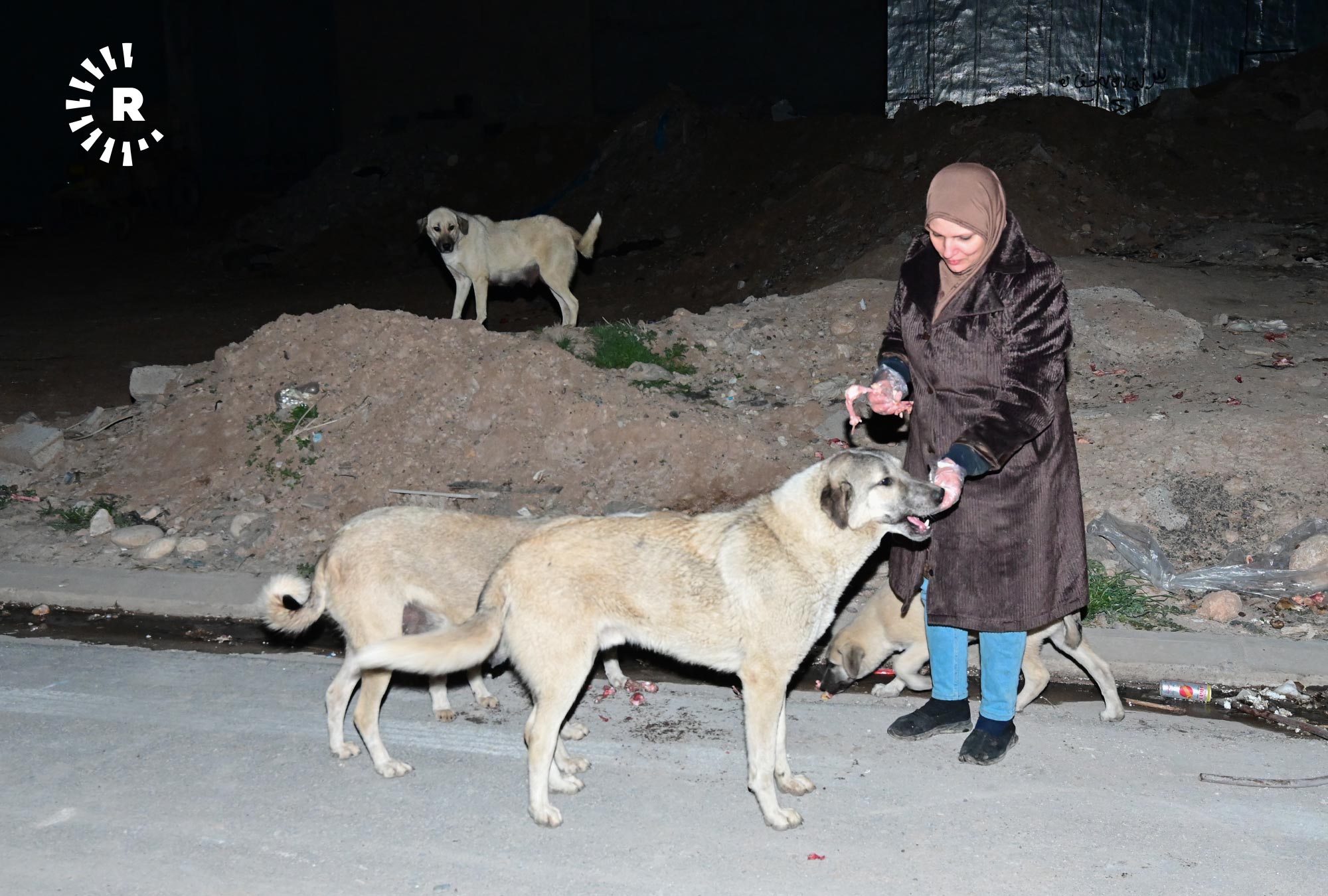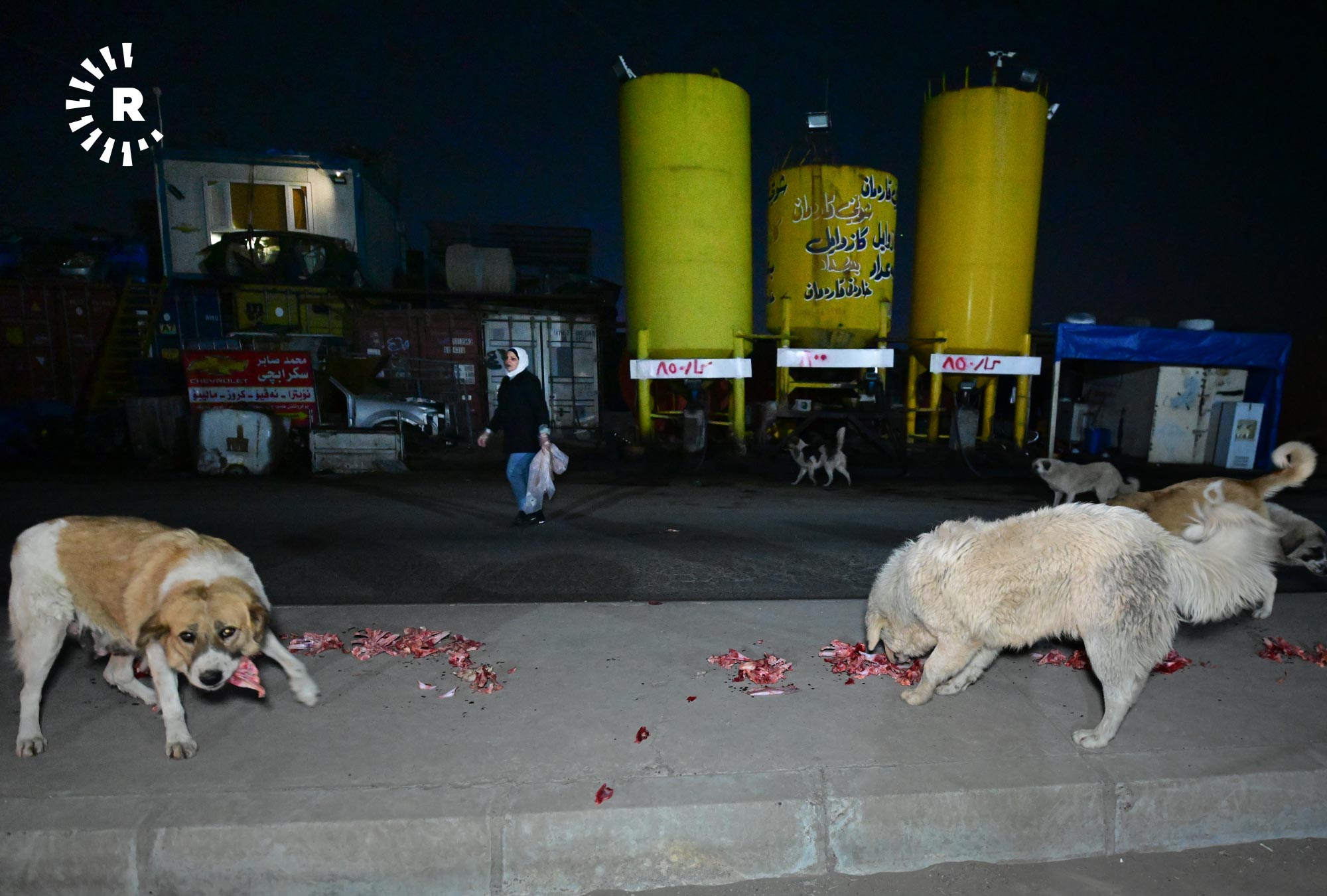إنعام صابر، 49 عاماً، تقيم في أربيل منذ 2009، في حي هوليري نوي، تخرج كل ليلة في الساعة الثانية بعد منتصف الليل بسيارتها باحثة عن الكلاب السائبة لتوزع عليها بحلول الصبح أكثر من 120 كيلوغراماً من الطعام.