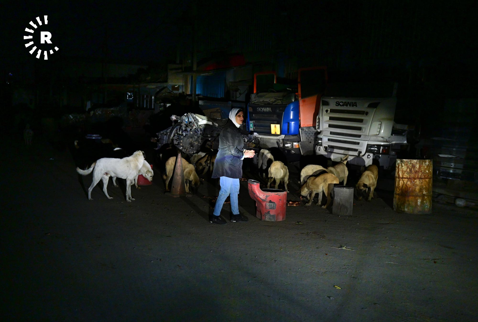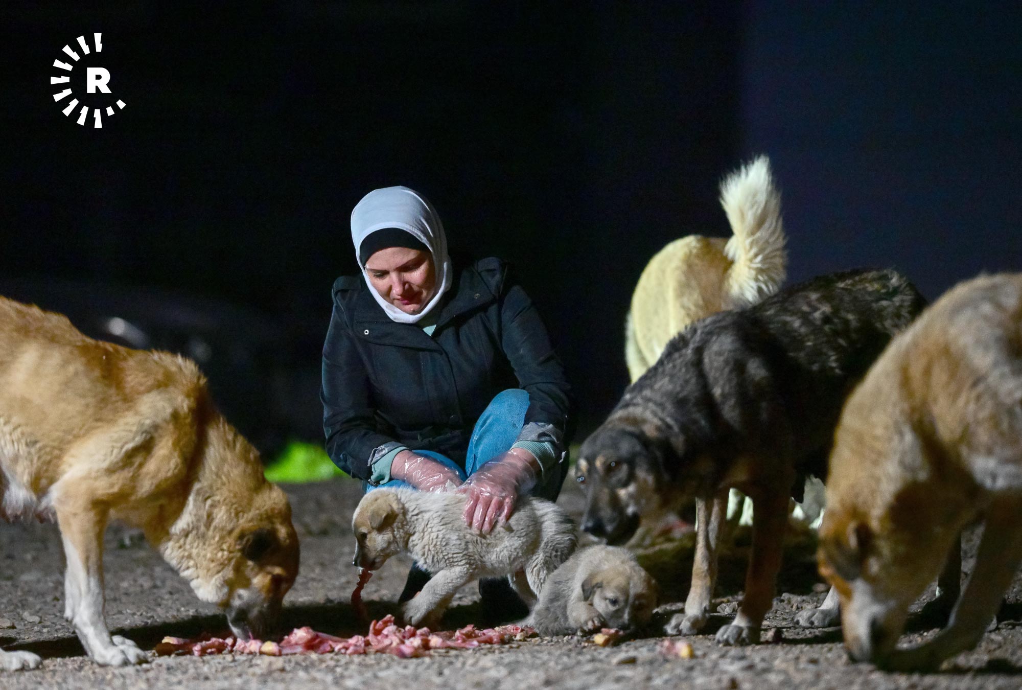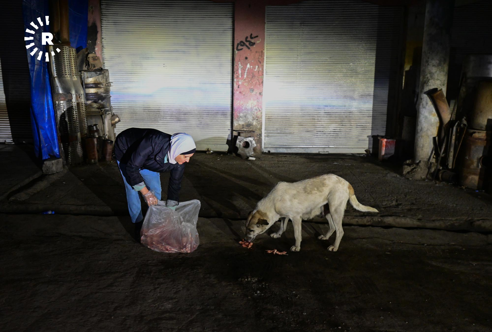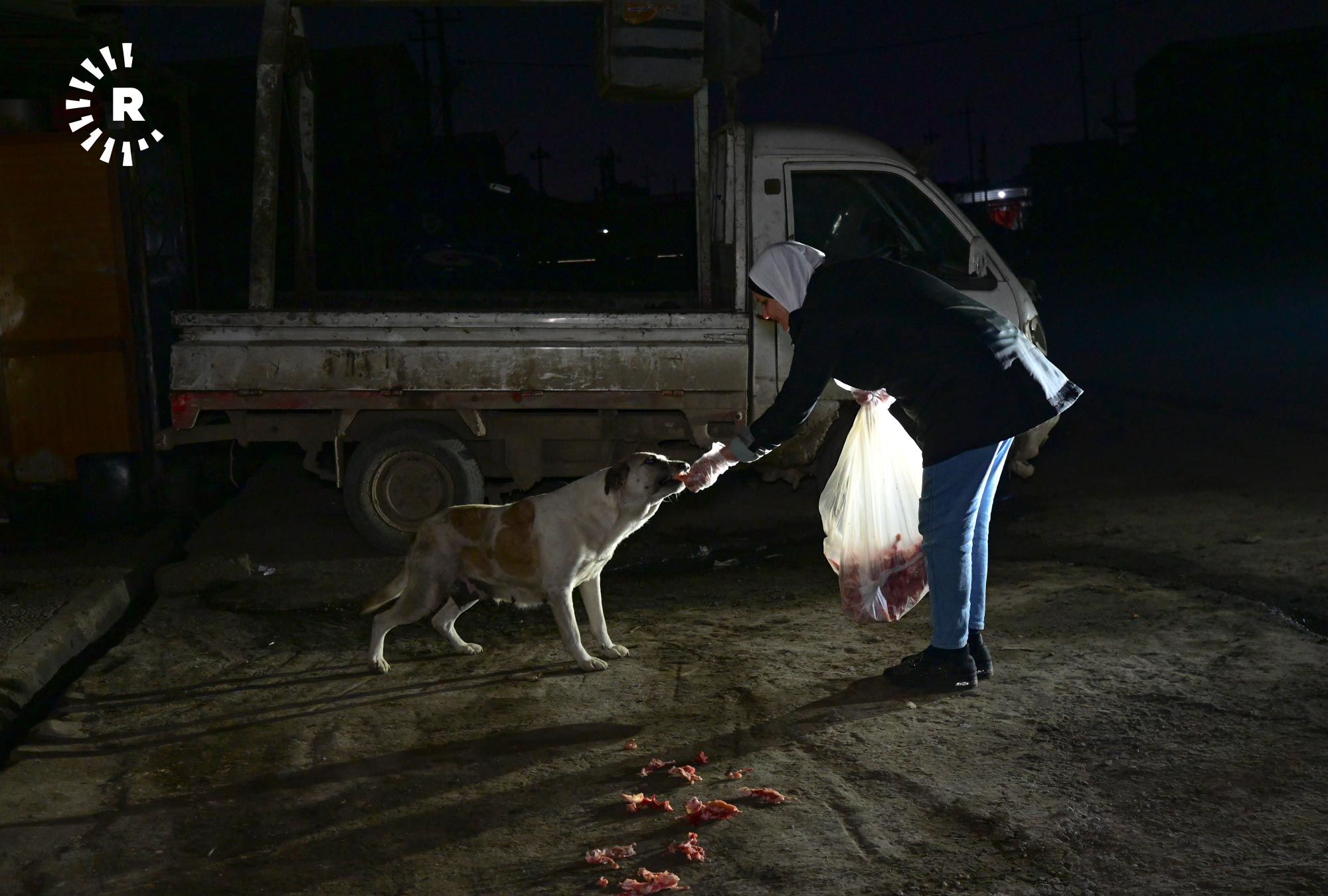 إنعام صابر، 49 عاماً، تقيم في أربيل منذ 2009، في حي هوليري نوي، تخرج كل ليلة في الساعة الثانية بعد منتصف الليل بسيارتها باحثة عن الكلاب السائبة لتوزع عليها بحلول الصبح أكثر من 120 كيلوغراماً من الطعام.