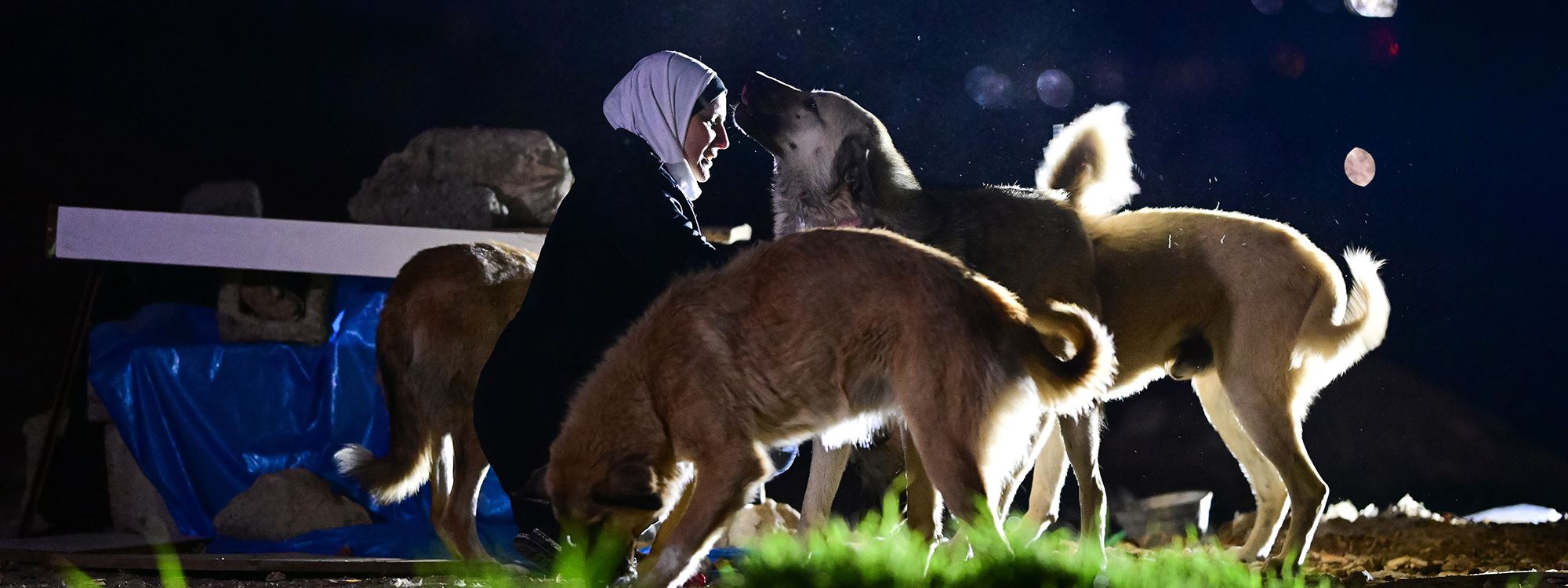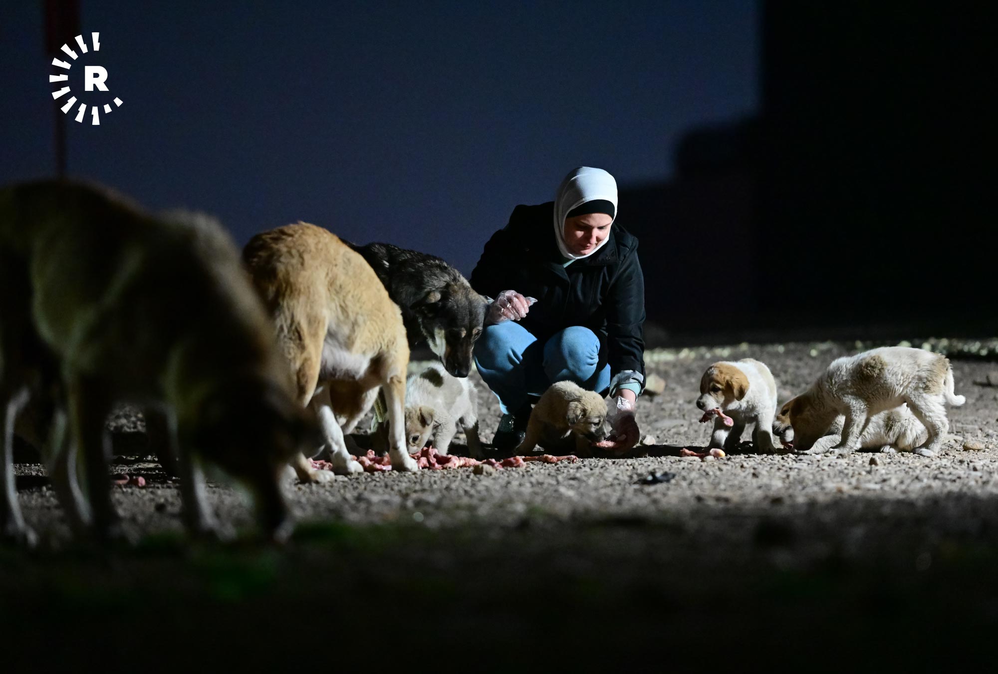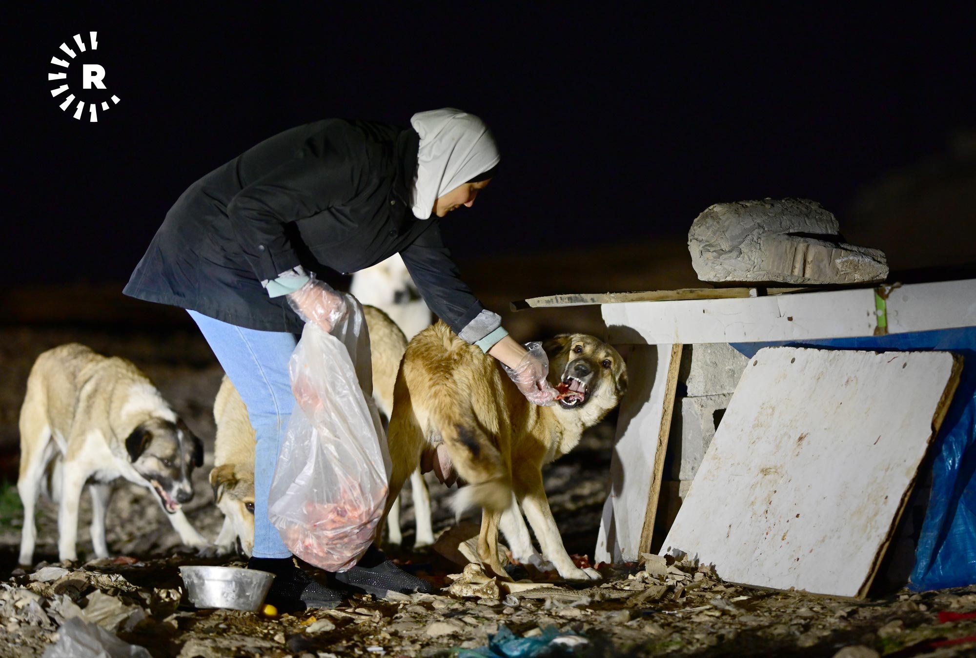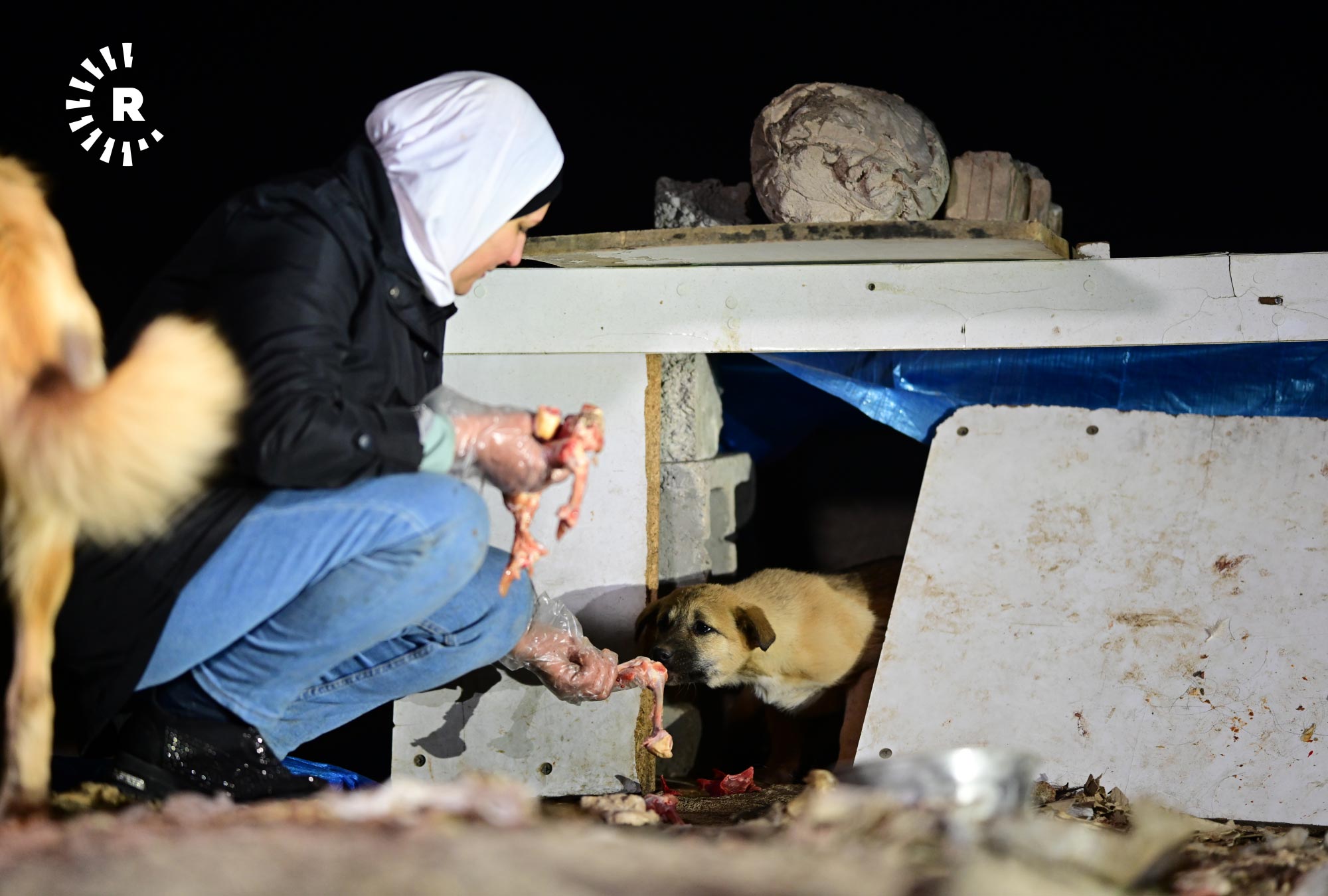 إنعام صابر، 49 عاماً، تقيم في أربيل منذ 2009، في حي هوليري نوي، تخرج كل ليلة في الساعة الثانية بعد منتصف الليل بسيارتها باحثة عن الكلاب السائبة لتوزع عليها بحلول الصبح أكثر من 120 كيلوغراماً من الطعام.