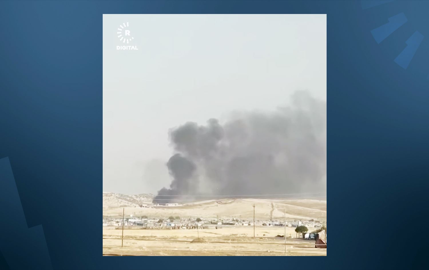 بحسب مقطع فيديو أرسل لشبكة رووداو الإعلامية، سمع مواطنون دوياً ضخماً قبل ارتفاع الدخان من المطار.
