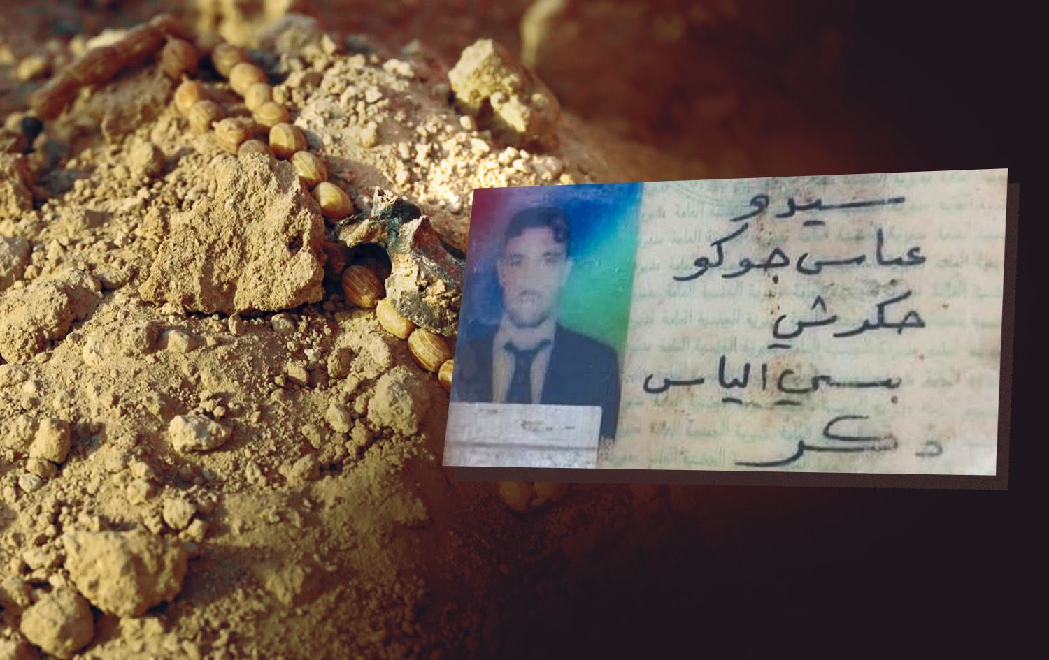 مع اكتشاف العظام، عُثر على هوية كوردي إيزيدي يُدعى سيدو عباس جوكو، من أهالي سيبا شيخ خدر شمال جبل سنجار.