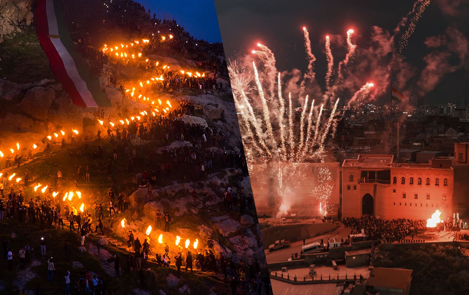 في أربيل، توجه العشرات من الشباب إلى قلعة المدينة حاملين مشاعل احتفالاً بقدوم السنة الجديد، وشاركوا في إيقاد شعلة نوروز أمام قلعتها.