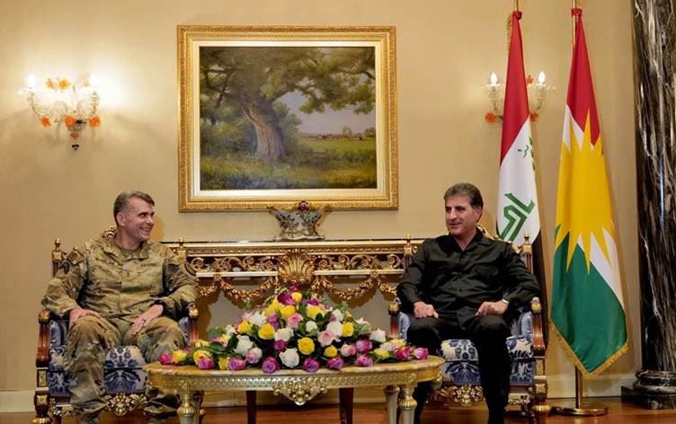 استقبل رئيس اقليم كوردستان نيجيرفان بارزاني وفداً عسكرياً رفيع المستوى للتحالف الدولي، مساء اليوم الأحد (20 آب 2023)، في مقرة بأربيل.