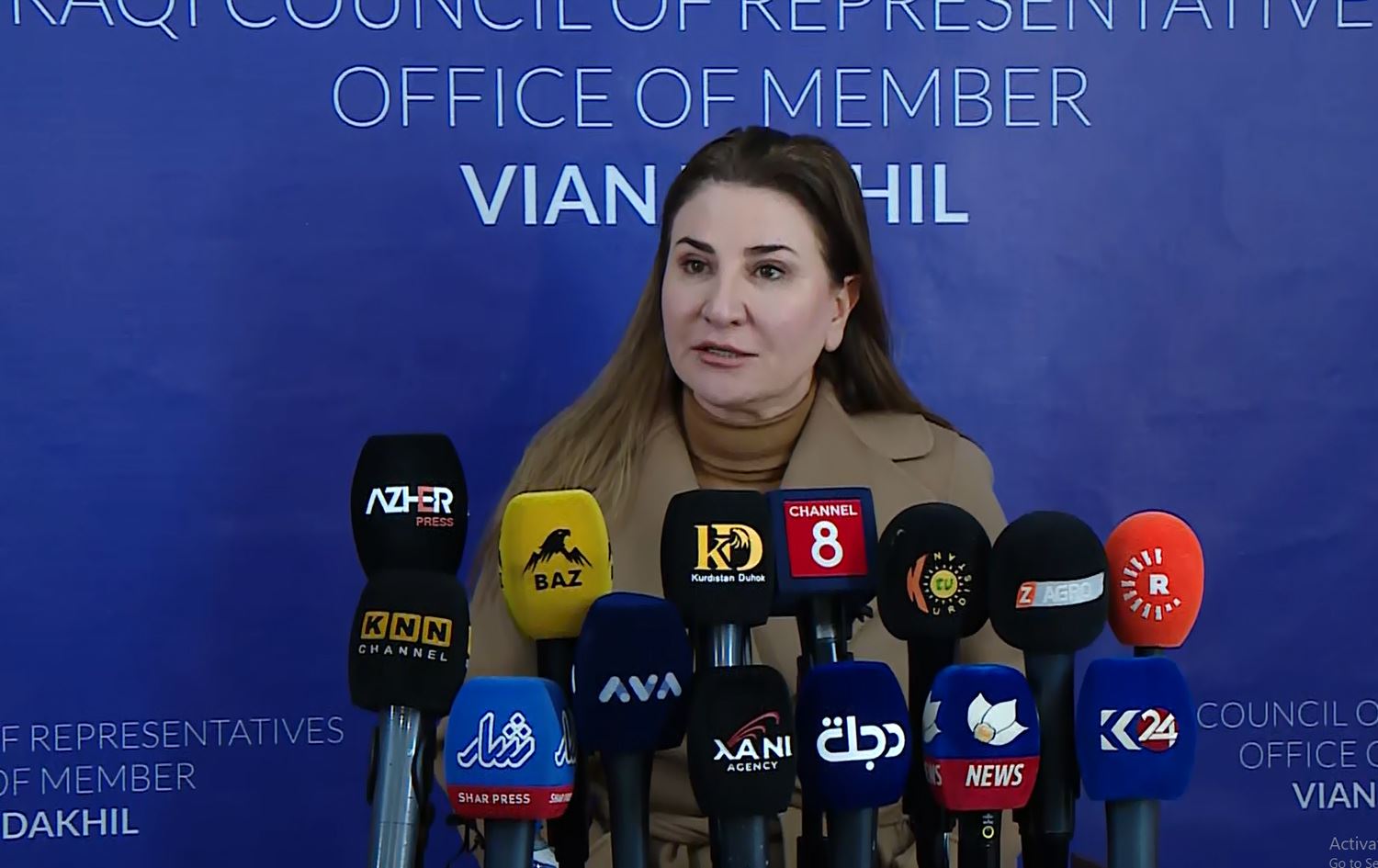 فيان دخيل نوّهت في مؤتمر صحفي، الأربعاء (21 شباط 2024)، إلى أن أسماء محمد التي ظهرت مؤخراً مع ابنتها وأدعت أنهما "مظلومتان وليست لديهن أية سلطة، كل ذلك كذب وتلفيق كان لهم دور كبير".