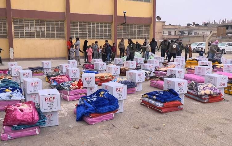 في هذا الوضع الصعب، بدأت فرق مؤسسة بارزاني الخيرية بتوزيع الطعام والماء والمستلزمات الشتوية على الذين لجأوا إلى المدارس والمساجد.
