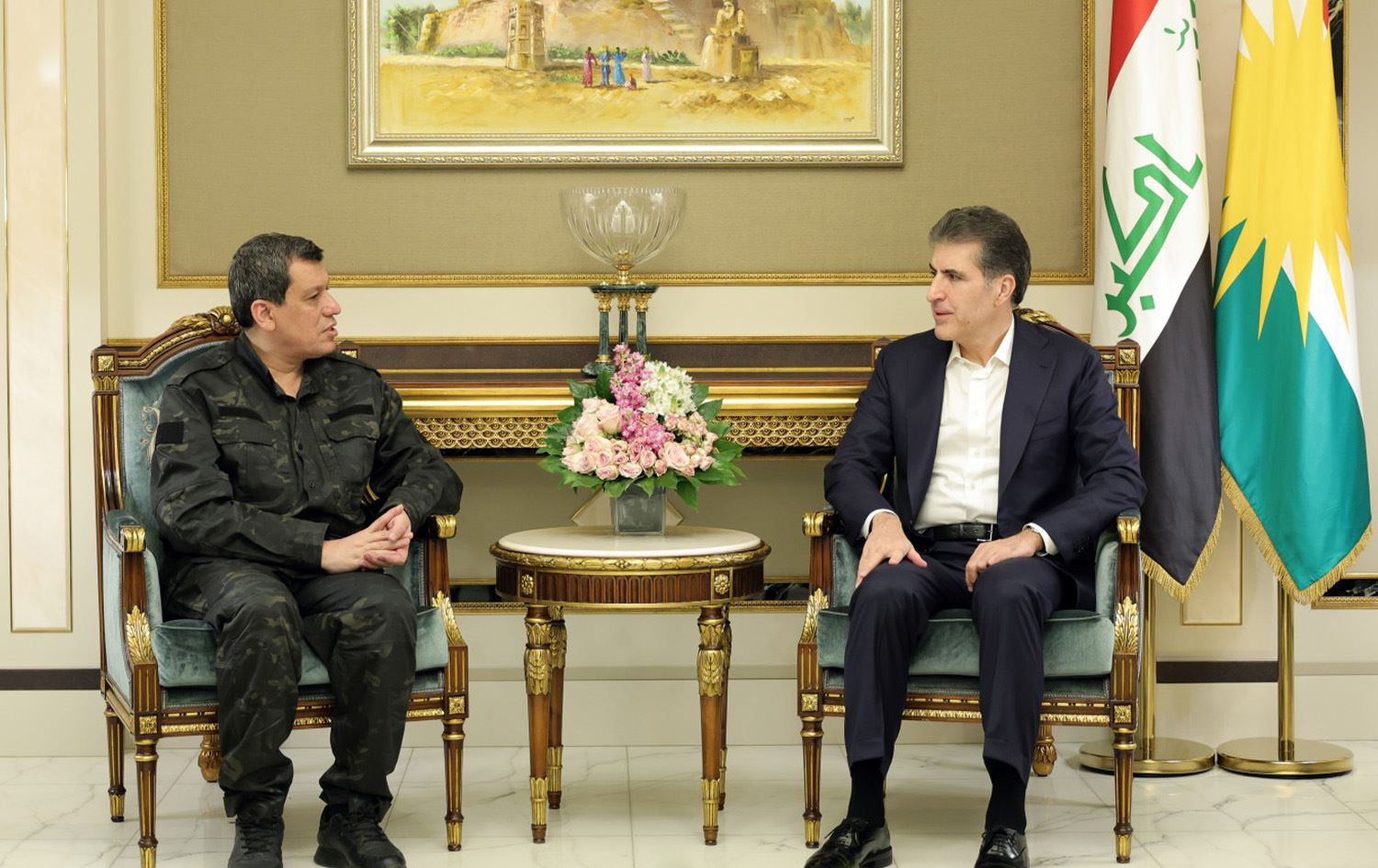 اجتمع نيجيرفان بارزاني يوم أمس مع مظلوم عبدي والوفد المرافق، حيث جرى بحث آخر مستجدات الأوضاع في سوريا.التقيتُ بالكاك نيجرفان برزاني@IKRPresident ، رئيس إقليم كردستان العراق، في إطار الجهود السياسية الرامية إلى تقريب وجهات النظر بيننا وبين الحكومة السورية.