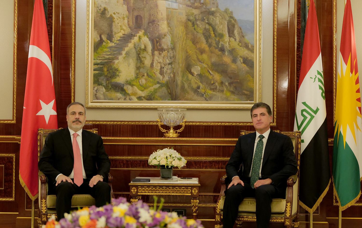 استقبل رئيس إقليم كوردستان نيجيرفان بارزاني، يوم الخميس (24 آب 2023)، وزير الخارجية التركي هاكان فيدان، حيث بحث الجانبان باهتمام مسألة استئناف تصدير نفط إقليم كوردستان عن طريق ميناء جيهان التركي، وتبادل الآراء بخصوص هذا الموضوع، فضلاً عن بحث الأوضاع العامة للمنطقة ومجموعة مسائل تحظى بالاهتمام المشترك للجانبين.