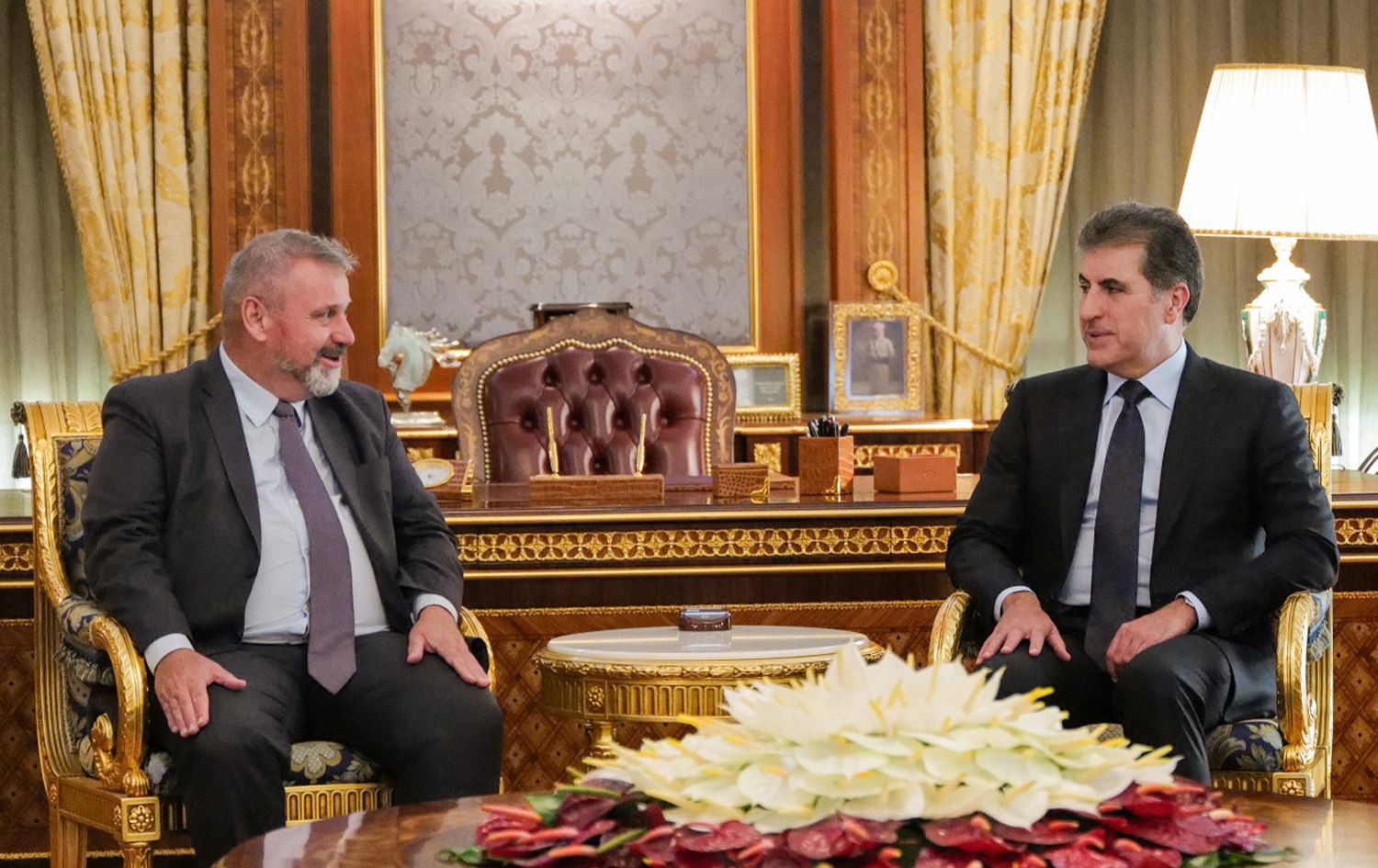 أكد رئيس إقليم كوردستان نيجيرفان بارزاني، خلال لقائه السفير توماس سايلر، رئيس بعثة الاتحاد الأوروبي في العراق، على رغبة الإقليم في تعزيز وتوسيع التعاون مع الاتحاد الأوروبي.