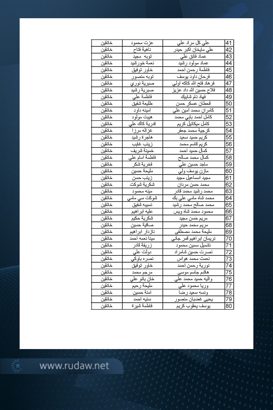 روا سمير أشار إلى أن جميعهم من الكورد، وبإمكانهم زيارة مكاتب خانقين للمادة 140 في حي الشهداء لاستلام صكوكهم، وستمنح كل عائلة 10 ملايين دينار".
