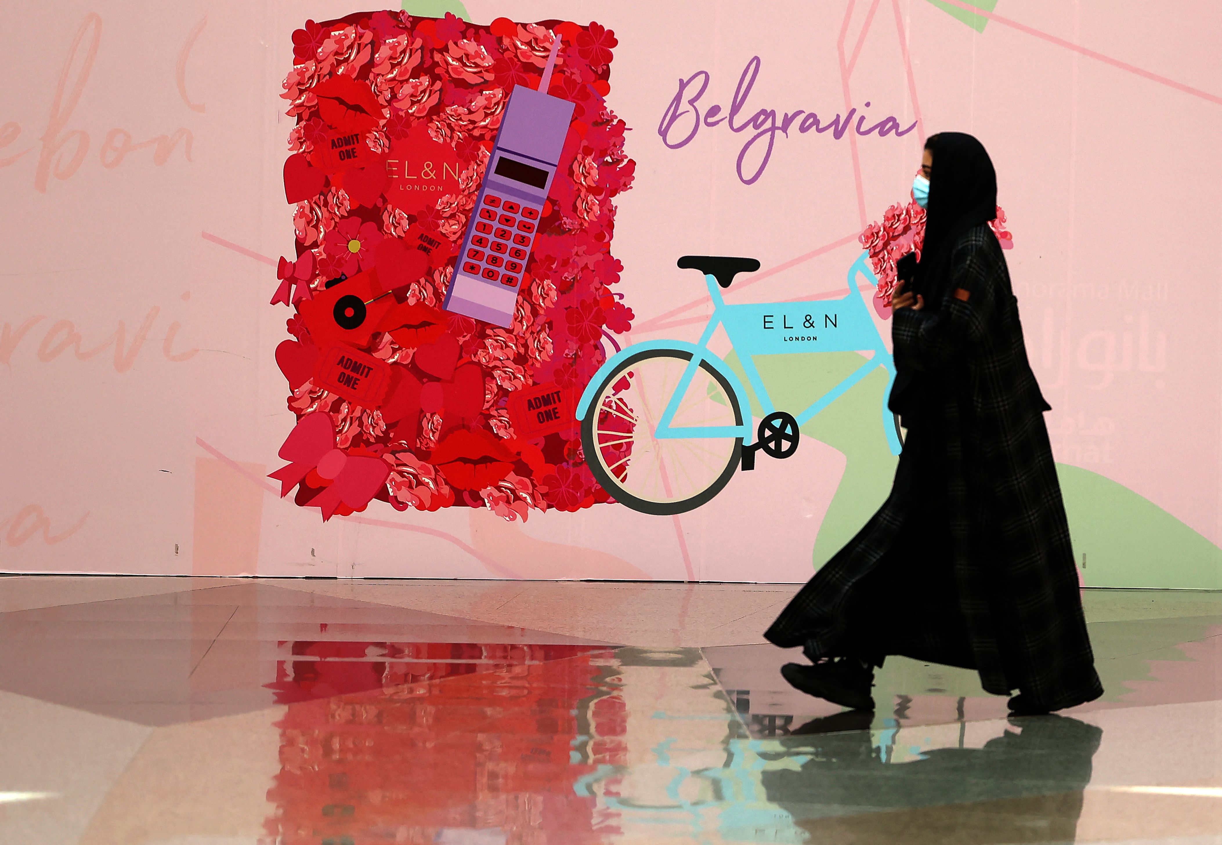ويُعد هذا الغزو الأحمر في واجهات المحال في مركز بانوراما التجاري في وسط الرياض بمثابة تقدم كبير عما كان عليه الحال قبل سنوات، حين كانت الشرطة الدينية تلاحق حاملي الورود الحمراء ومن يرتدون ملابس حمراء في عيد العشاق الذي يُحتفل به سنويا في 14 شباط.