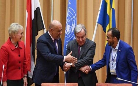 من جهته قال المبعوث الأممي لليمن، مارتن غريفيث، في الجلسة الختامية لمشاورات السلام التي انعقدت في ستوكهولم، اليوم الخميس، بحضور وفدي التفاوض اليمني، والأمين العام للأمم المتحدة أنطونيو غوتيريس، ووزيرة خارجية السويد، مارغوت فالستروم، إن "اليمن يعاني من أسوء أزمة إنسانية في العالم، وأن الأطراف المتواجدة هنا لها فرصة لتغيير ذلك"، وخاطب الحاضرين قائلاً: "اليمن بين أيديكم".