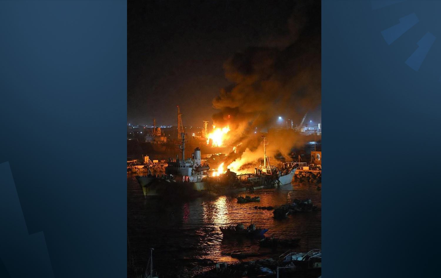 وأفاد مسؤول في الميناء اليمني بتلقي اتصال تحذيري لإخلاء الميناء قبل دقائق من استهدافه واشتعال النيران به.