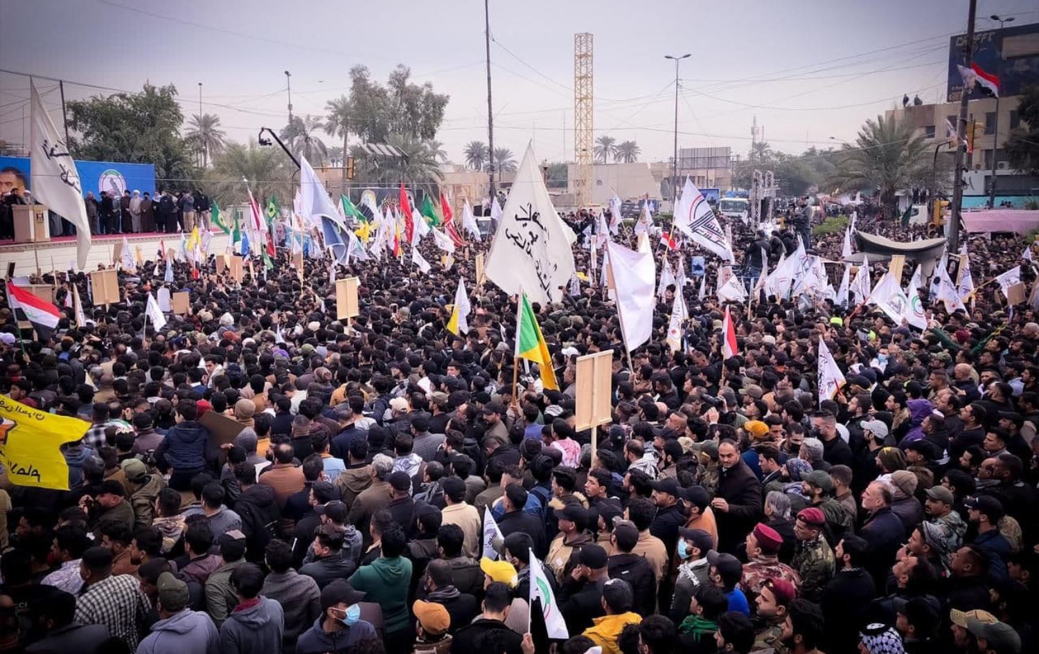 وشهدت العاصمة العراقية بغداد، منذ صباح اليوم السبت (1 كانون الثاني 2022) ازدحامات بعدد من الشوارع الرئيسية، اثر قطوعات قامت بها السلطات الأمنية، استعدادا لانطلاق تظاهرة من أنصار الحشد الشعبي، لاحياء الذكرى الثانية لاغتيال القائد السابق لفيلق القدس التابع للحرس الثوري الايراني قاسم سليماني، والنائب السابق لرئيس هيئة الحشد الشعبي أبو مهدي المهندس.