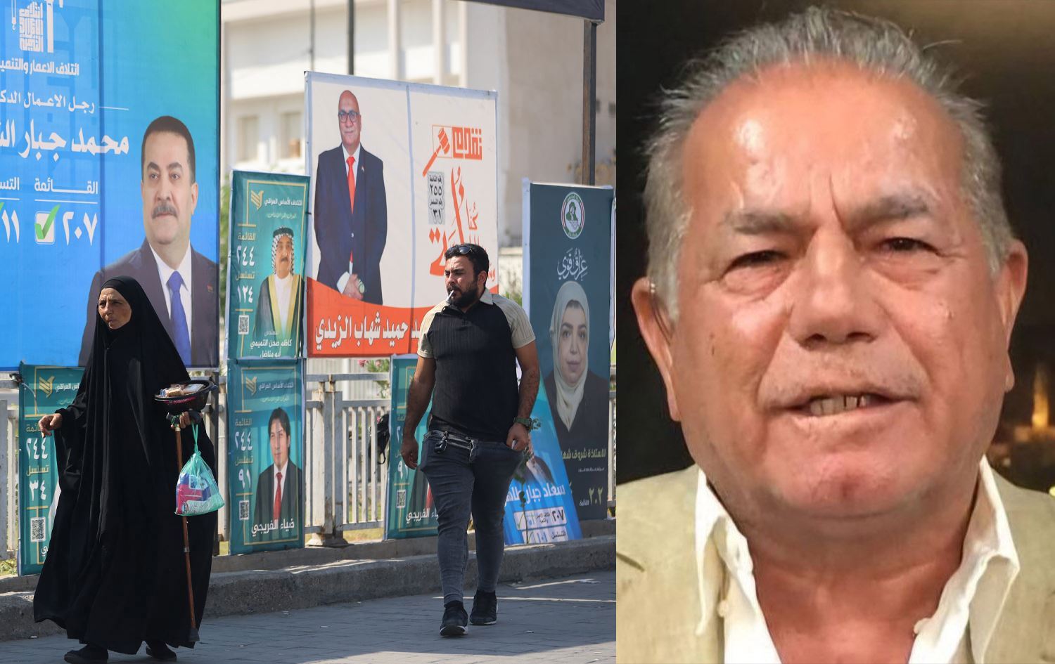 مضيفاً "فيما يتعلق بالحرس القديم فما يزال في الصورة نوري المالكي، زعيم ائتلاف دولة القانون، وعمار الحكيم، زعيم تيار الحكمة، وهادي العامري رئيس منظمة بدر، وهؤلاء الثلاث ربما ستكون لهم صولة في الانتخابات، هذا ما يبدو من خلال الدعايات الانتخابية الجدارية الضخمة". واصفاً الحملات الدعائية بـ"المهووسة"، وقال "اليوم كنت في شارع أبو نؤاس وشاهدت الشارع الجديد بمجسر أبو نؤاس الموازي للشارع القديم وطوله 4 كيلومترات تقريباً، وهو مزدحم بالإعلانات الضخمة لمرشح واحد ضمن ائتلاف السوداني، هذا بذخ كبير واستغلال لـ4 كيلومترات لشخص واحد، هذا بالإضافة إلى أن الأرصفة والعمارات والأبنية العالية والجزرات الوسطية مزدحمة بصور المرشحين، وهناك مثنى السامرائي الذي احتلت دعاياه الانتخابية ساحة الطيران (خلف ساحة التحرير) كلها، ووضع لوحات إعلانية بحدود 30 متراً، بينما احتلت إعلانات الحلبوسي مدخل مدينة المنصور من جهة معرض بغداد الدولي، وهذا استغلال بشع للمساحات، وهذه الإعلانات لها تأثير ربما سلبي أكثر مما هو إيجابي".