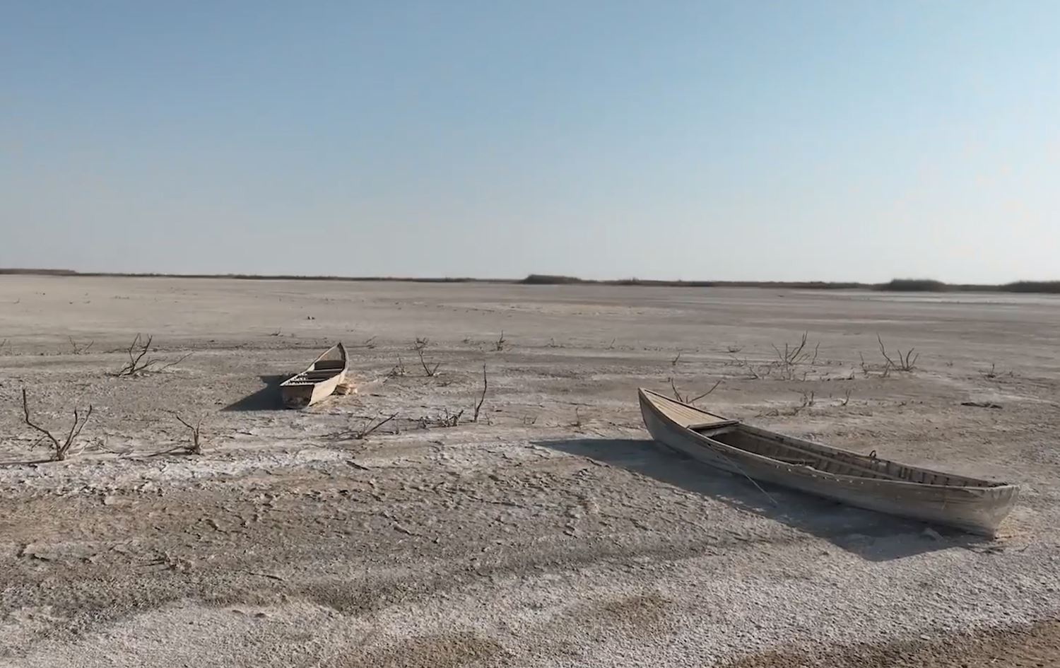مساحات شاسعة من الأرض المتشققة القاحلة والقوارب المهجورة، باتت دليلاً صارخاً على كيفية تحوّل الممرات المائية المزدهرة ذات يوم إلى صحراء.