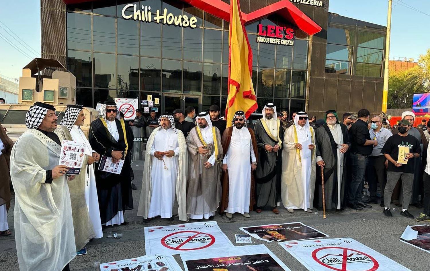 وكان العشرات بينهم شيوخ عشائر، تظاهروا أمام مطاعم "تشيلي هاوس" في شارع السعدي بمحافظة البصرة، مطالبين بإغلاقه كنوع من المقاطعة للمنتجات والبضائع الأميركية.