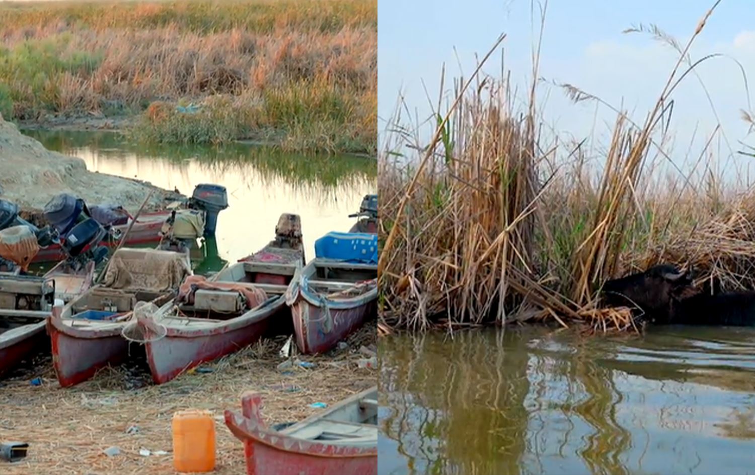 "الجبايش"، أمّ أهوار العراق، طبيعة فريدة من نوعها تعجّ بالحيوانات والطيور، كما تصطف الجواميس وهي تقتات على القصب الذي نما في الأهوار.