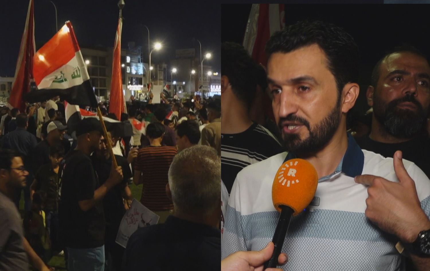 المتظاهر حسين الإزيرجاوي يقول: "حقاً لا يُعقل لشخص إرهابي، يداه ملطخة بدماء العراقيين وضلع في قتل أبنائنا، أن نأتي اليوم ونفرش له السجاد الأحمر ونستقبله بدعوى أن هذا انفتاح عليه. هذا مرفوض لدينا رفضاً قاطعاً".
