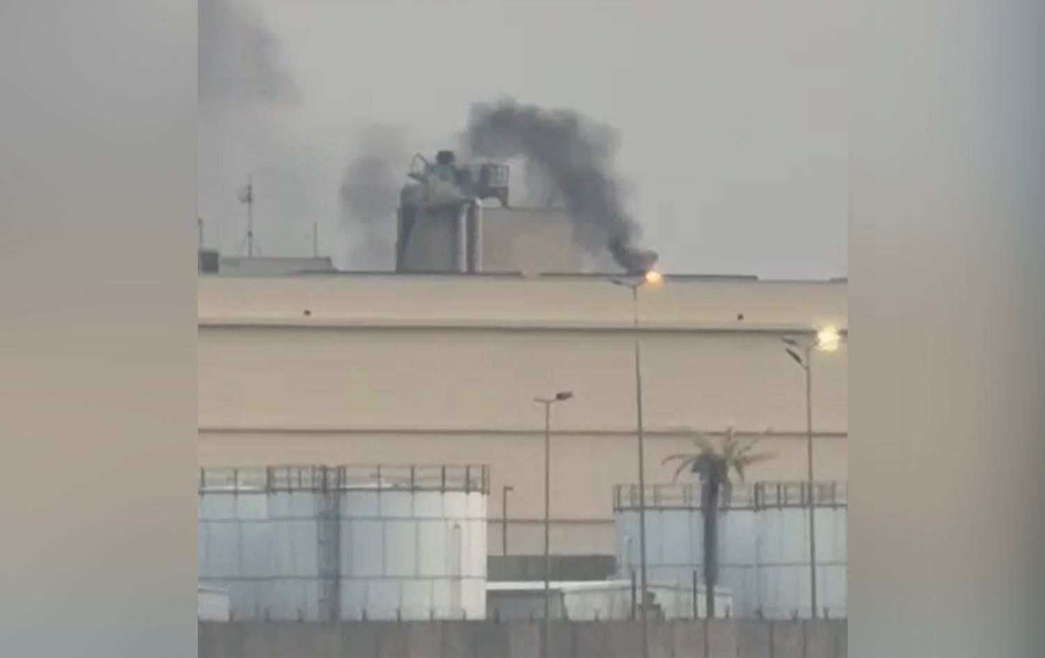وتصاعد عمود من الدخان فوق مجمع السفارة صباح اليوم السبت.