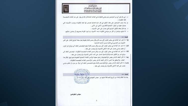 ولفتت المفوضية الى كيفية ملء المقعد الشاغر في الحالات المختلفة، واستبدال أعضاء مجلس النواب، إلى جانب مجموعة من الأحكام العامة.