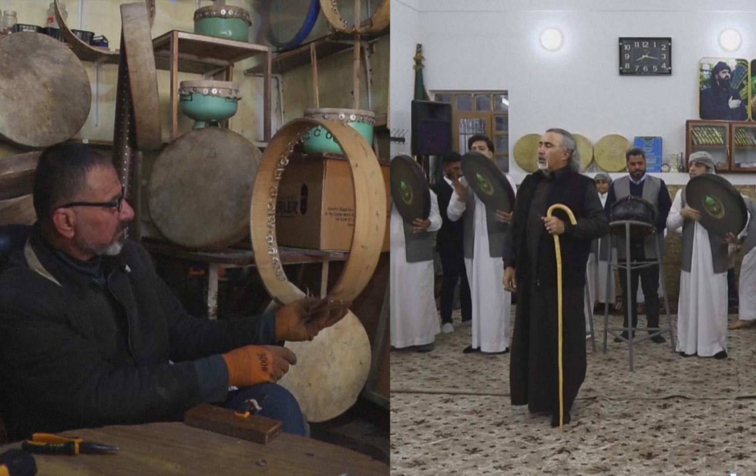 في ورشته الصغيرة بمدينة الموصل العراقية، ينهمك عبد الحق إسماعيل في صناعة دف تقليدي، حيث يلف قطعة من الجلد الطبيعي بعناية حول إطار خشبي، متبعاً خطوات دقيقة تضمن جودة الصوت والأداء.