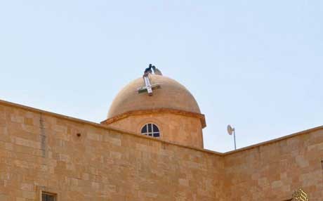 ونشر تنظيم "الدولة الاسلامية" داعش تقريرا مصورا يظهر مسلحيه وهم يقدمون على تدمير المعالم المسيحية لكنيسة ماركوركيس التاريخية قرب الموصل والمقبرة القريبة منها.
