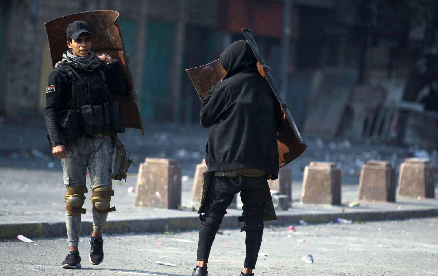 تستمر الاشتباكات بين الفينة والأخرى في عدة مناطق يتواجد فيها المتظاهرون، لكن أبرزها مايحصل في ساحة الخلاني ببغداد ومحيطها، إذ تواصل قوات مكافحة الشغب والمتظاهرين بتبادل إطلاق كرات حديدية صغيرة تدعى بالعراقي بـ "الصجم" عبر سلاح المقلاع البدائي، او مايعرف بالعراقي "المصيادة، أو الكزوة".