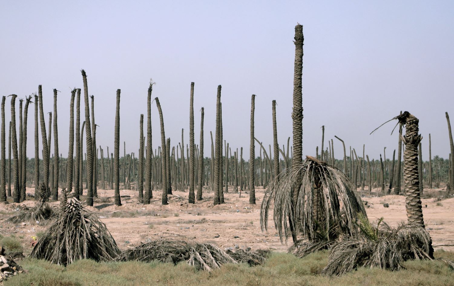 وجاءت حرب تحرير الكويت لتقتل الآلاف من أشجار النخيل عندما قصفت طائرات قوات التحالف غابات النخيل بمواد كيمياوية حولت الأشجار إلى جذوع خاوية وصارت كشواهد على هذه المجازر الاجرامية بحق البيئة والثروة الزراعية.