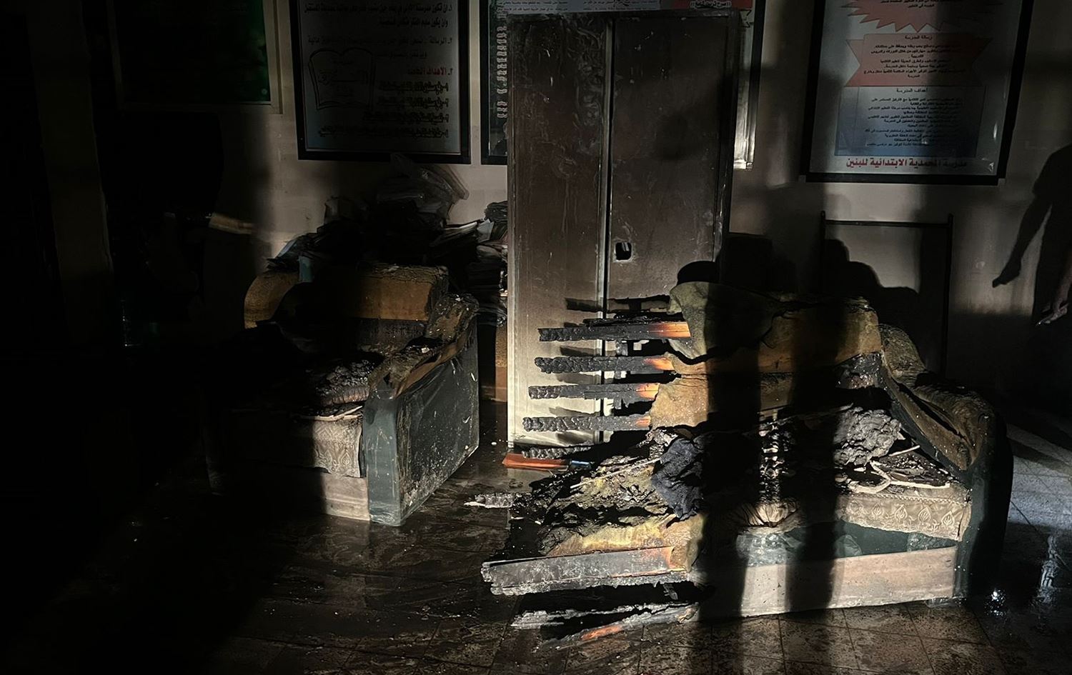 وأوضح العبيدي: "قام الفاعل بكسر زجاج شباك غرفة ادارة مدرسة المحمدية الابتدائية للبنين، وكسر زجاج شباك غرفة ادارة مدرسة الاستبرق الابتدائية للبنات المزدوجة معها، والقيام بمحاولة حرق السجلات والقيود".