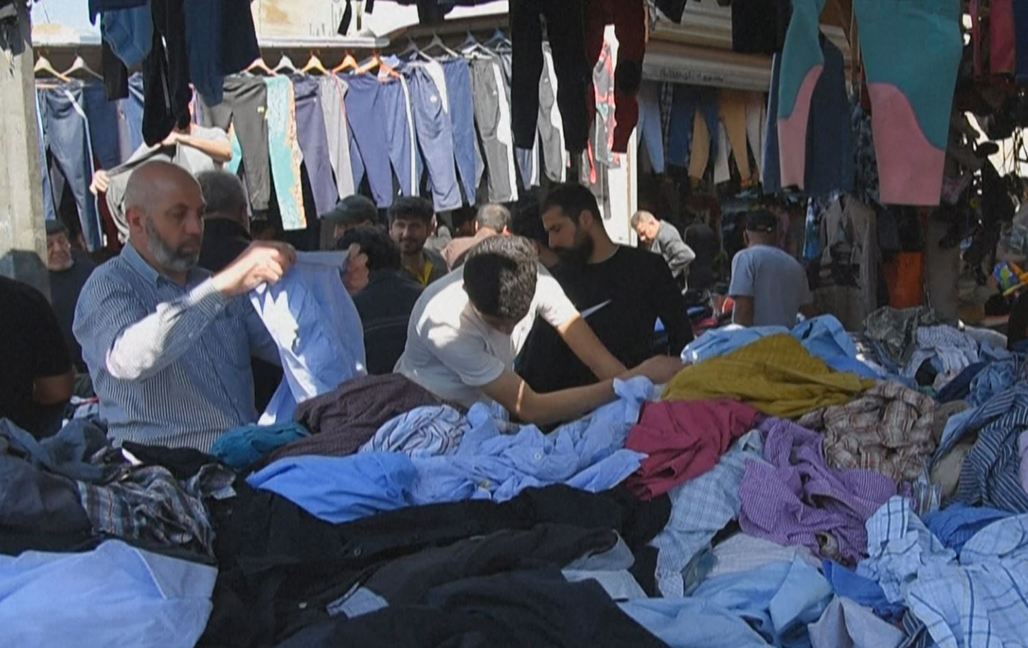 وسط تلال من الثياب المستعملة المكدّسة على بسطات أو داخل متاجر، كان طالب الهندسة محمد علي البالغ من العمر 20 عاماً يبحث مع صديقه عن حذاء.