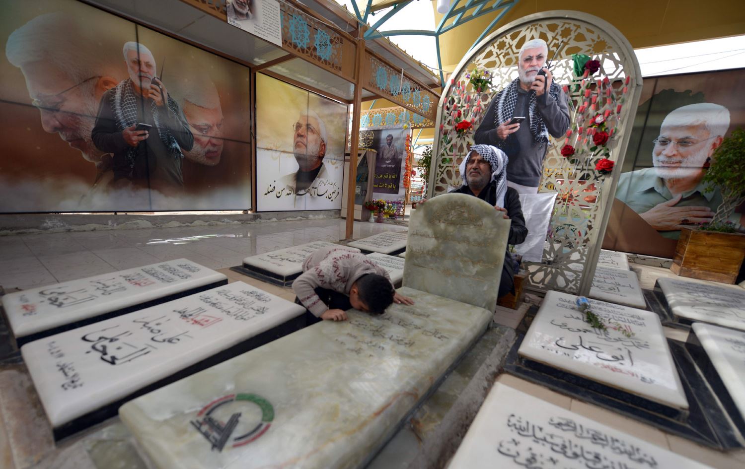 انضمت الفتيات إلى رجال يلطمون صدورهم ونساء يبكين، تجمعوا حول القبر الذي أصبح مقصداً لآلاف الشيعة المطالبين بالثأر من الولايات المتحدة، بعد أكثر من شهر ونصف الشهر على مقتل المهندس بغارة أميريكة في بغداد أودت كذلك بحياة قائد فيلق القدس الإيرانية قاسم سليماني.