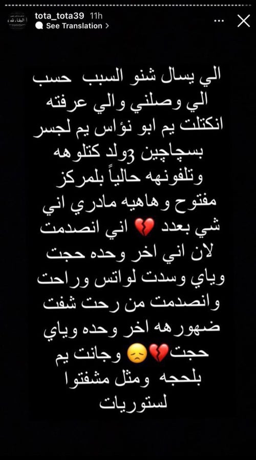 وتفيد الأنباء، بتعرض الفتاة نورزان الشمري، البالغة من العمر 20 عاماً لاعتداء جنسي وطعن حتى الموت من قبل ثلاثة رجال بالقرب من جسر الجادرية ببغداد.