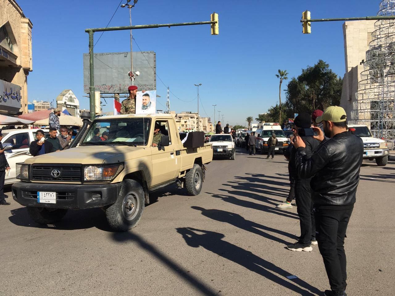 أقام الحشد الشعبي استعراضاً بعجلاته العسكرية، في ساحة التحرير وسط العاصمة بغداد، استذكاراً لضحايا القصف الأميركي لكتائب حزب الله قبل سنة في مدينة القائم الحدودية.