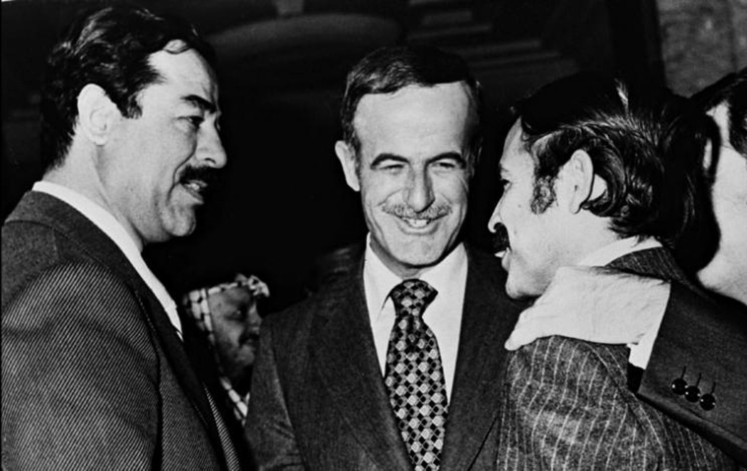 نائب الرئيس العراقي وقتذاك صدام حسين (يسار) والرئيس السوري حافظ الأسد ووزيرا خارجية سوريا عبد الحليم خدام والجزائر عبد العزيز بوتفليقة في قمة بغداد نوفمبر 1978 (غيتي)