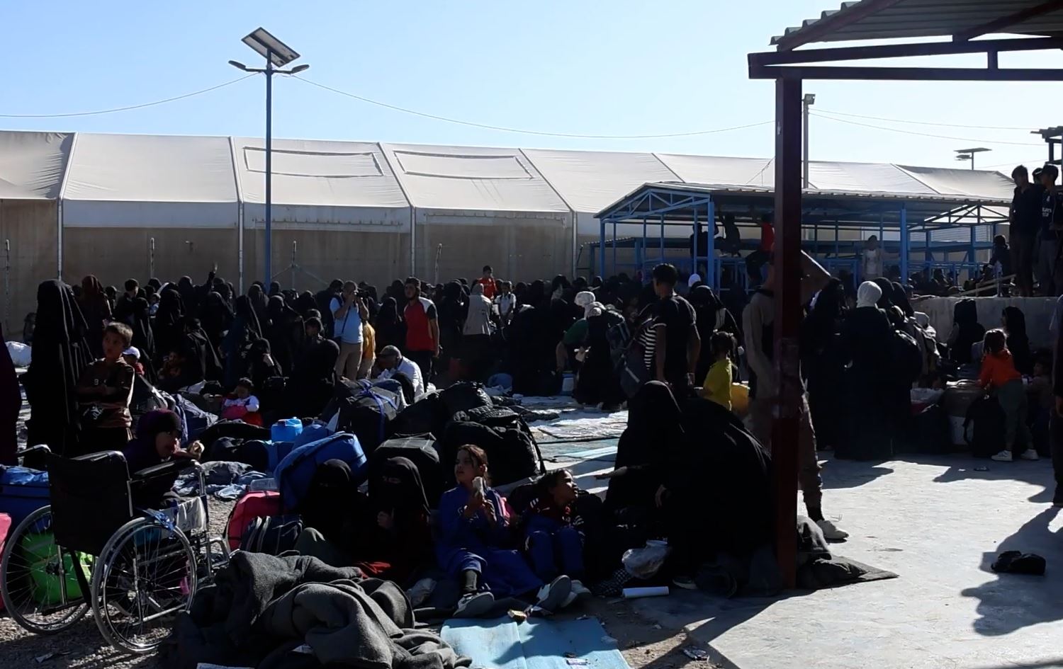 تُظهر اللقطات جنوداً أميركيين يسيرون بين النساء والأطفال، بينما كانت العائلات تجمع متعلقاتها قبل ركوب الحافلات خارج المخيم.