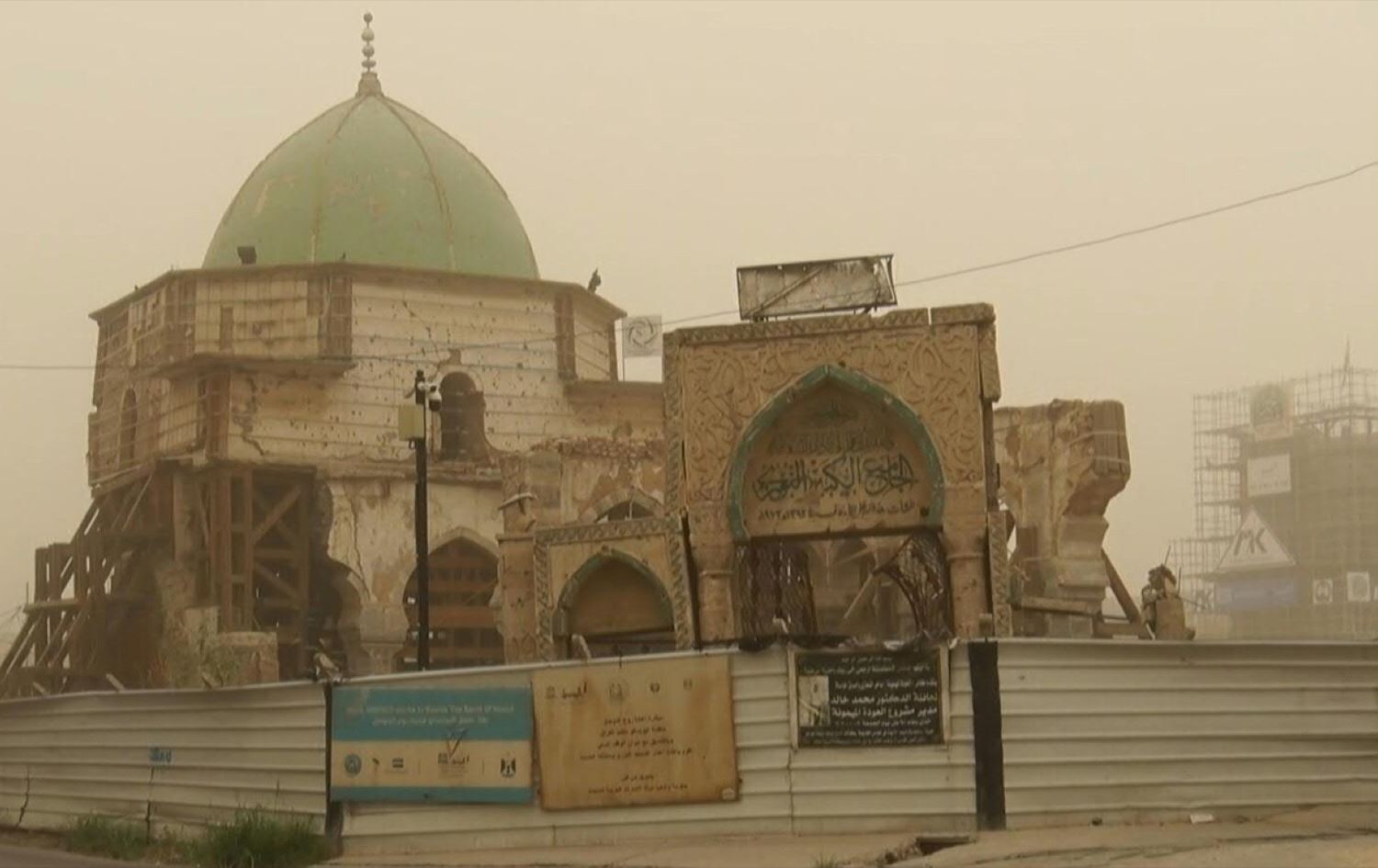 ودُمّر الجامع ومنارته الحدباء في حزيران 2017 خلال المعارك بين القوات العراقية وداعش بفعل متفجّرات وضعها عناصر التنظيم داخل المسجد، بحسب الجيش العراقي.