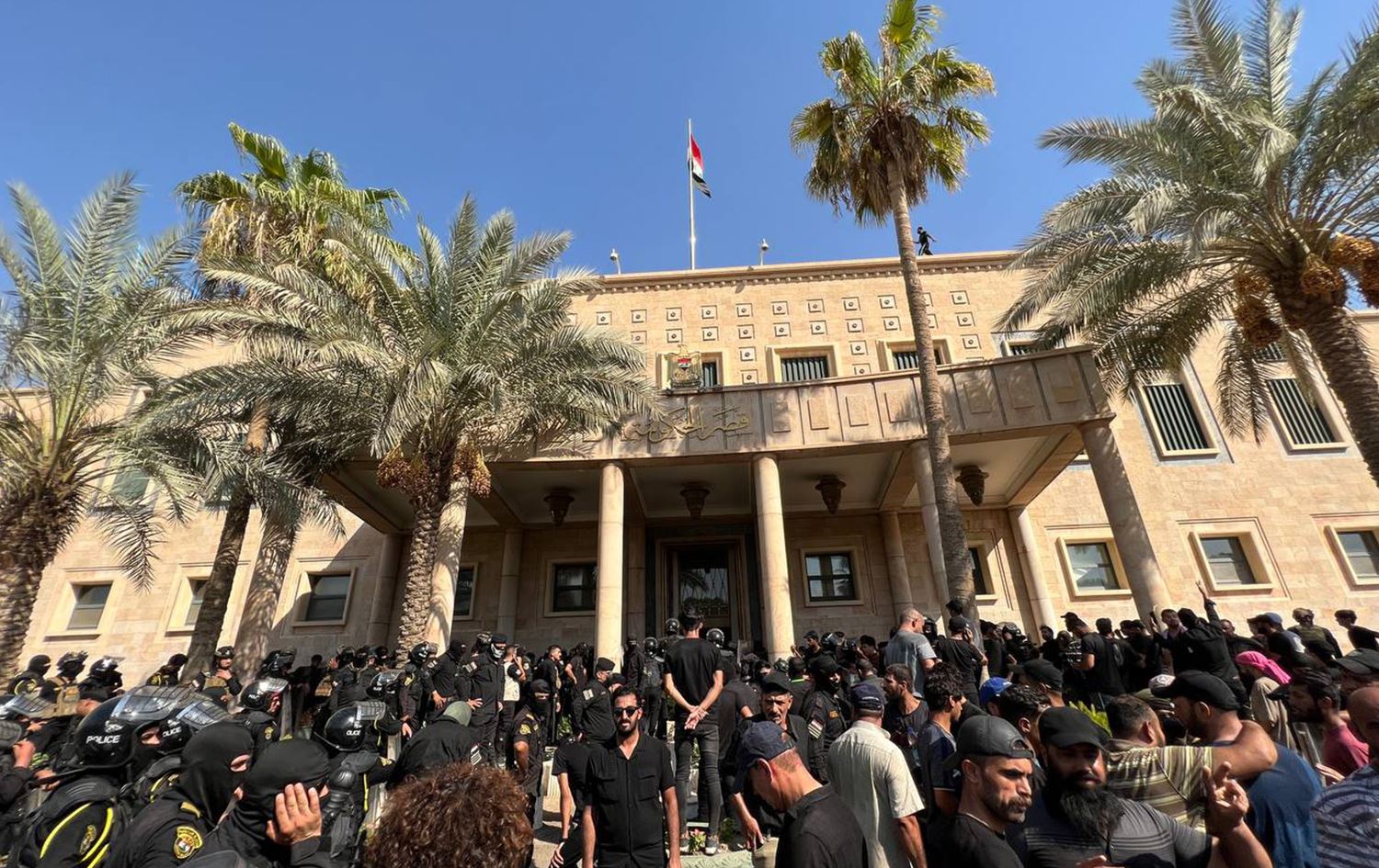 بعد اعلان بيان الحائري، ومن ثم الصدر، توجه الالاف من انصار التيار الصدري الى المنطقة الخضراء، واقتحموا القصر الجمهوري، في رد غاضب منهم على الاوضاع الحالية التي يمر بها العراق، لتبادر القوات الامنية الى اعلان حالة حظر التجوال في بغداد وغلق المنافذ المؤدية الى العاصمة، ومن ثم اعلان حظر التجوال الشامل في عموم المحافظات العراقية.