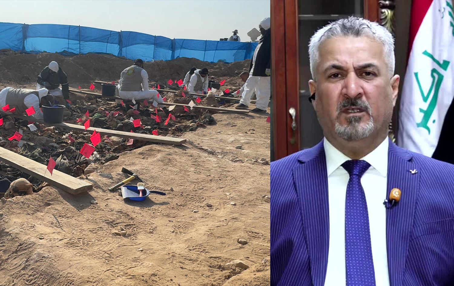 وأكد أن عملية فتح المقبرة "يجب أن تكون منسجمة مع ما يتوفر من مساحة لدى دائرة الطب العدلي لتكون هناك عملية انسيابية بين الفتح والرفع والتسليم إلى دائرة الطب العدلي وتحديد هوية الضحايا".