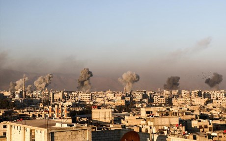 وصعّدت قوات النظام وحلفاؤها منذ بداية الشهر الحالي قصف مدن وبلدات في الغوطة الشرقية، إثر شن هيئة تحرير الشام وفصائل اسلامية عدة هجوماً على أحد مواقعها عند أطراف مدينة حرستا.