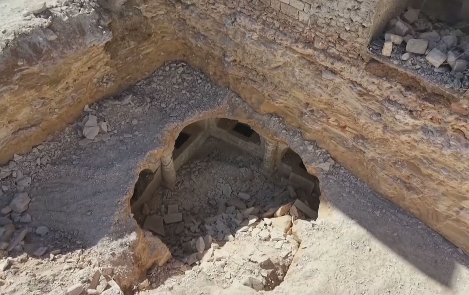 ويضم الموقع الذي اكتُشف أسفل حيّ سكنيّ متضرر، غرفتي دفن تحتوي كلٌّ منهما على ستة قبور حجرية، وقد وُجد على أحد الأعمدة المحفورة علامة صليب بارزة، إلى جانب قطع فخارية وزجاجية تؤكد نسبتها للعهد البيزنطي.