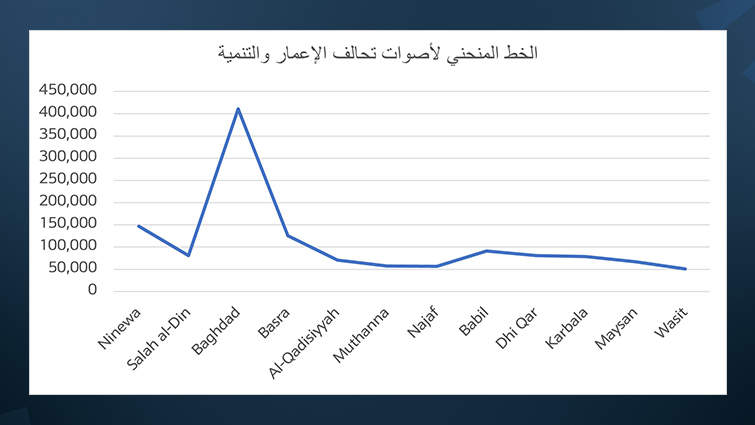 فازت قائمة السوداني في 12 محافظة على حوالي 9% من أصوات كل محافظة، أكثر تلك الأصوات كانت في واسط، وميسان، وكربلاء، وذي قار، وكانت قائمة السوداني الأولى في ست محافظات من ثماني محافظات كان الصدريون فيها الأوائل في انتخابات 2021. رغم أن الصدر نفى أنه دعم قائمة السوداني سراً، لكن هذا يظهر أن مقاطعة الصدر انصبت على الأقل في صالح تحالف الإعمار والتنمية للسوداني.
