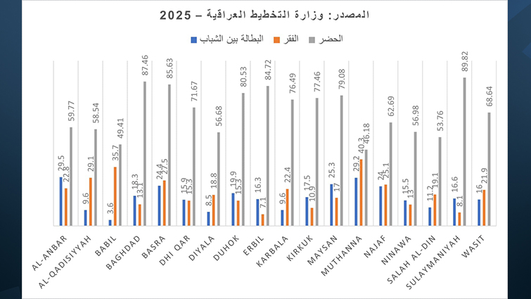 في محافظات كالأنبار، والمثنى، ودهوك، وميسان، وكركوك، وبغداد، توجد أعلى نسبة بطالة في صفوف الشباب، لكن المشاركة باستثناء ميسان التي بقيت في حدود الـ40، في جميع تلك المحافظات الأخرى كانت بمستوى عالٍ. في بابل وديالى والقادسية وكربلاء حيث نسبة بطالة الشباب هي الأقل، بقيت نسبة المشاركة دون 50%، باستثناء نسبتها في ديالى.