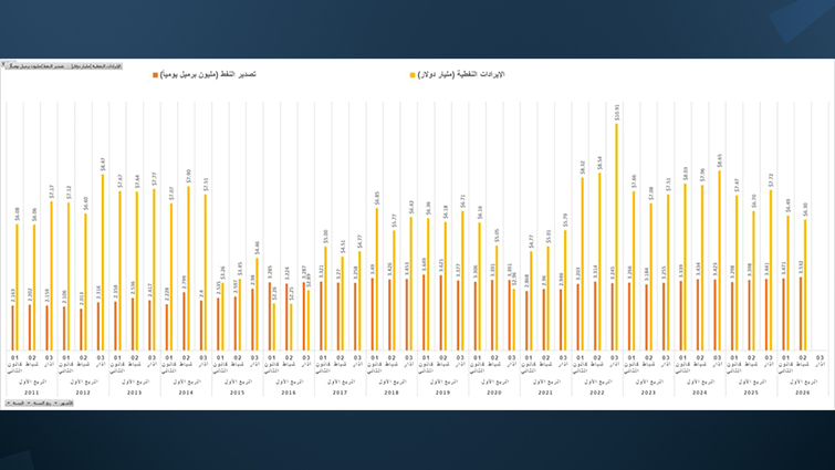 حجم الصادرات النفطية العراقية وإيراداتها الشهرية (كانون الثاني 2011 - شباط 2026)